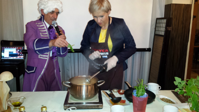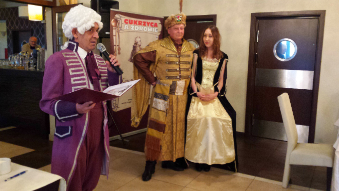Czwartkowe Obiady u Diabetyków to już 8-letnia tradycja. Odbywają się w różnych miastach Polski, by poprzez zabawę i wspólne biesiadowanie krzewić wiedzę o cukrzycy. Akcję wspierają znane osoby ze świata polityki i kultury. Ich zadaniem jest ugotowanie dietetycznej potrawy, która podawana jest zgromadzonym. Tym razem obiad wydano w Biskupcu, a jedną z przygotowujących potrawę była wiceminister skarbu Urszula Pasławska. Pani Minister ugotowała pyszną zupę-krem z pieczonych pomidorów. A doglądał osobiście i doradzał sam król Stanisław August Poniatowski, w którego rolę wcielił się znany reżyser telewizyjny i teatralny Dariusz Szada-Borzyszkowski.