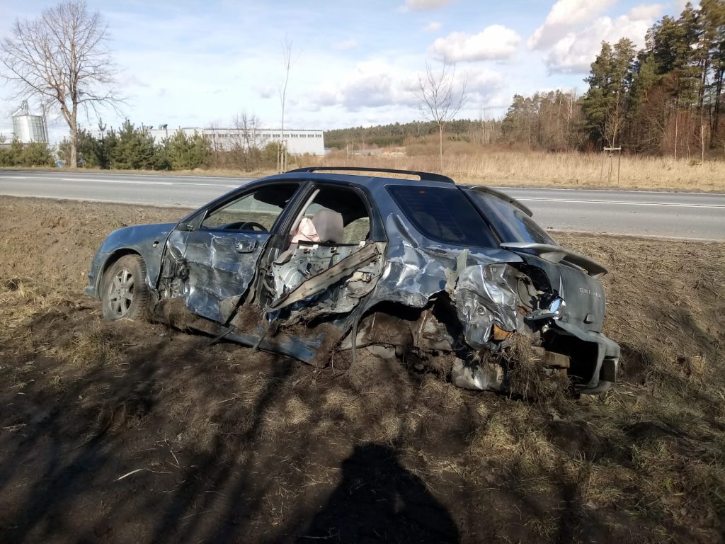 Przed południem, na wyjeździe z Dobrego Miasta, kierowca osobowego volvo zjechał na przeciwny pas ruchu i zderzył się czołowo z nadjeżdżającym subaru. W wyniku zdarzenia oba auta znalazły się w rowie, z czego jeden dachował.