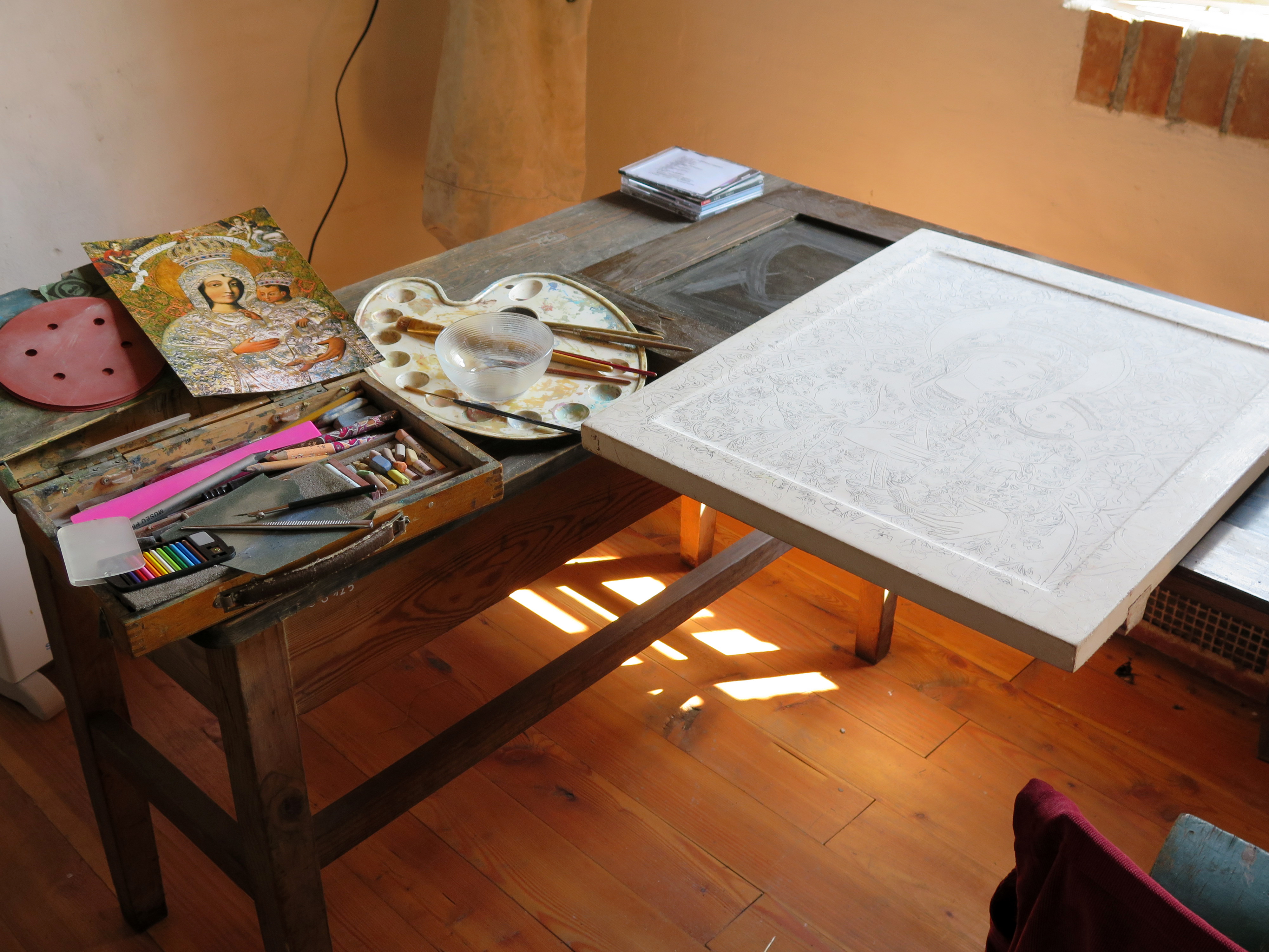 Tworzę ją na lipowej desce. Teraz przygotowuję szkic. Artysta malarz podkreśla, że do stworzenia ikony potrzeba nie tylko cierpliwości, zaangażowania i czasu.