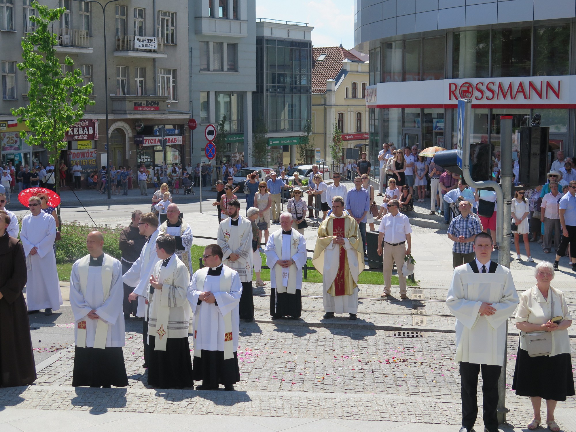 Tysiące wiernych uczestniczyło w centralnej procesji Bożego Ciała, która przeszła ulicami Olsztyna. Po mszy świętej w bazylice konkatedralnej pod wezwaniem świętego Jakuba wierni zatrzymali się przy czterech ołtarzach.
