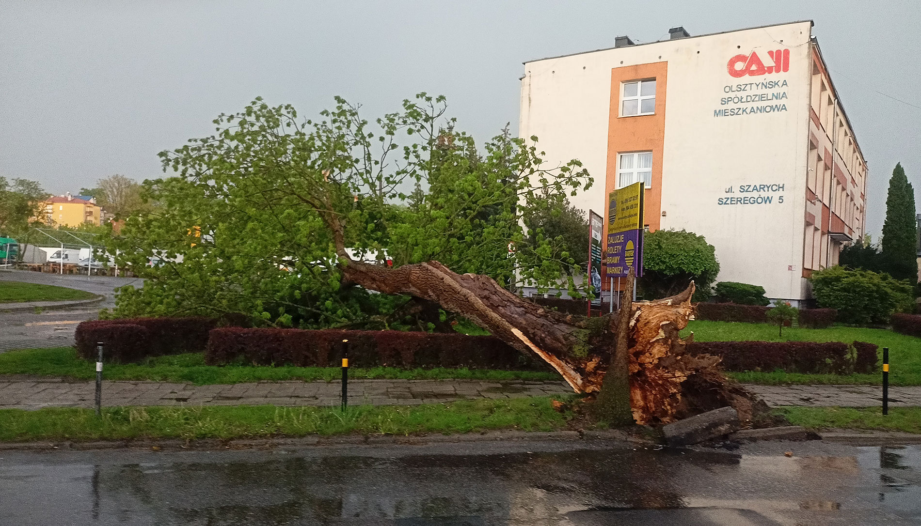 Wieje też silny wiatr – miejscami do 90ciu kilometrów na godzinę. Jak wynika z informacji straży pożarnej wpłynęło ponad 20 zgłoszeń. Najczęściej dotyczyły połamanych konarów drzew na drogach. Nikomu nic się nie stało.