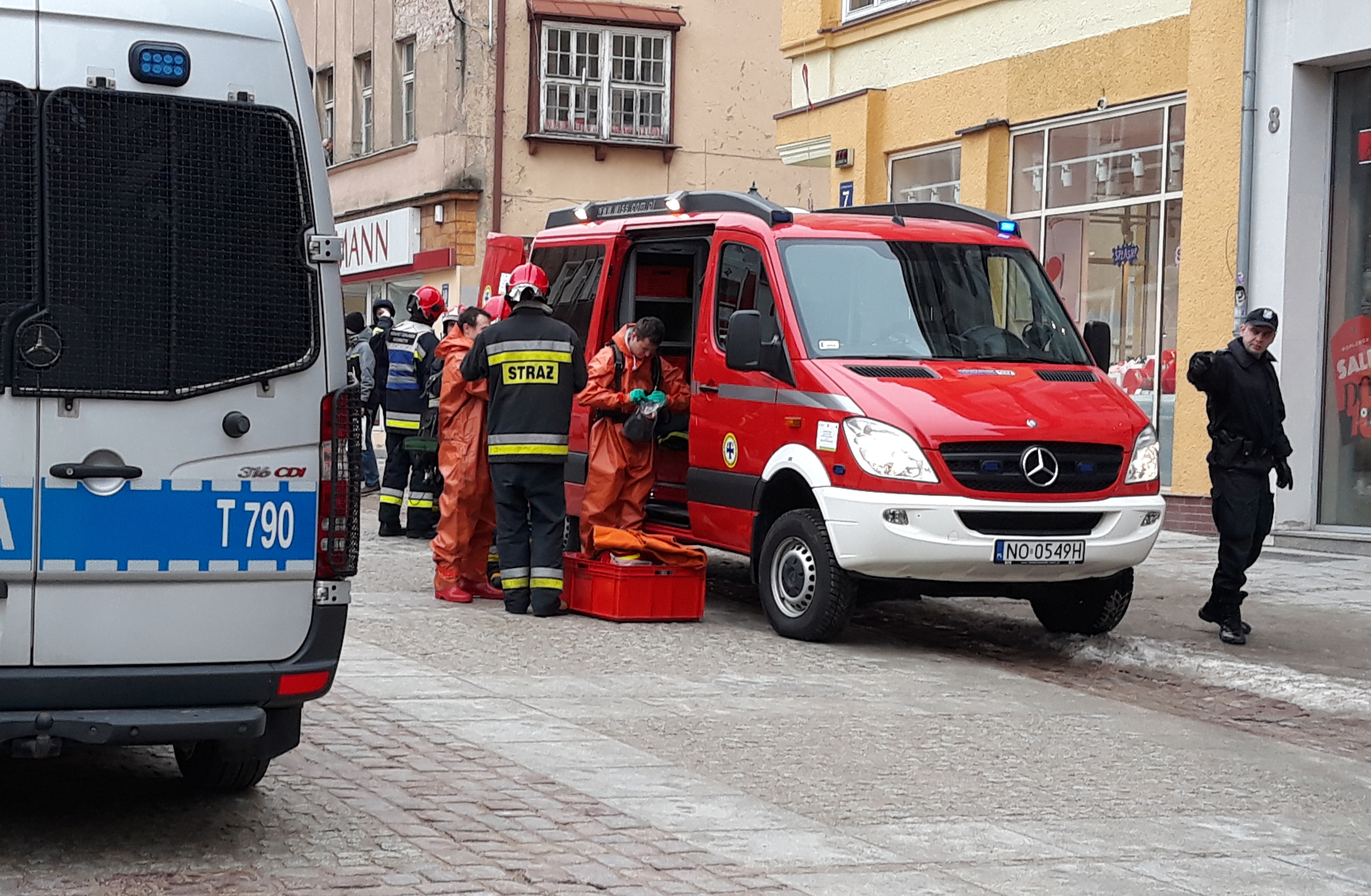 Na miejscu kilkadziesiąt minut pracowali strażacy z grupy chemicznej. Mieli na sobie specjalne pomarańczowe kombinezony i maski. W okolicach ulicy świętej Barbary roztaczała się bardzo nieprzyjemna woń rozlanej substancji. Policjanci zamknęli część deptaku i ulicy świętej Barbary. Teraz – ruch został przywrócony.