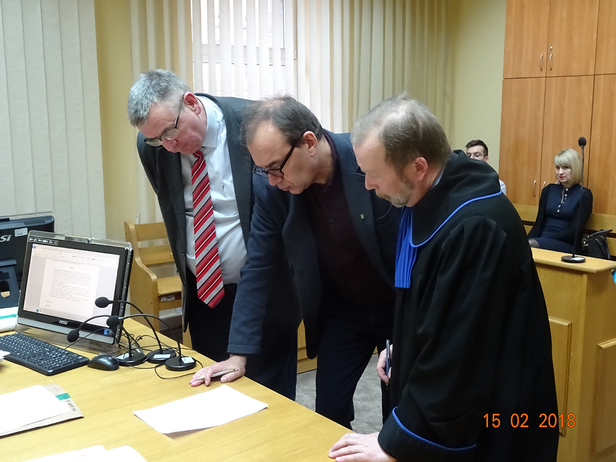 Chwila przed podpisaniem ugody w sądzie pracy, w środku Paweł Jarząbek, od lewej p.o. dyrektora GOKu Leszek Orciuch, fot. A.Socha