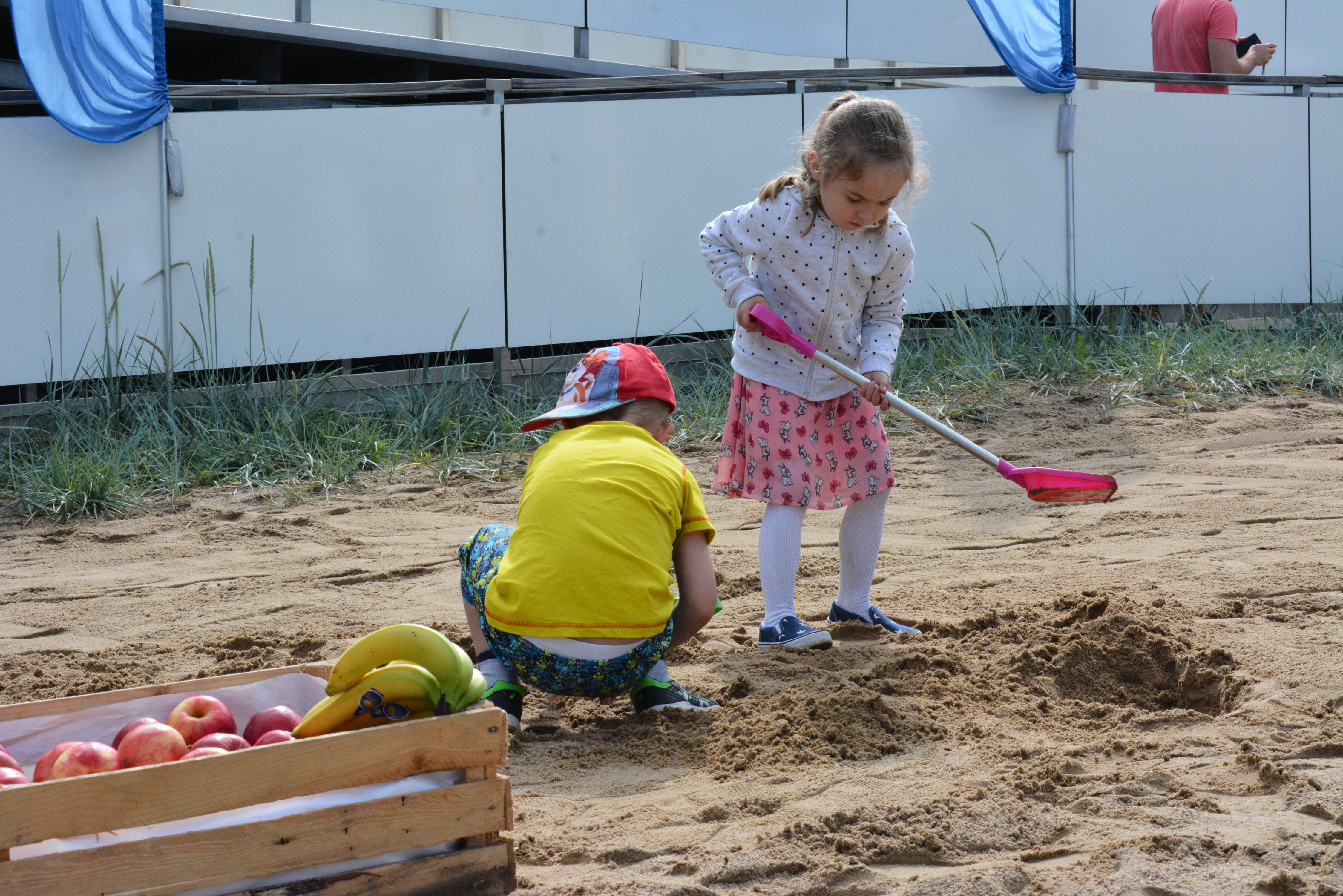 Dzieci szukały skarbów, a my rozdawaliśmy nagrody 🙂 Byliśmy w Centrum Rekreacyjno-Sportowym Ukiel. Dzieci przy użyciu łopatek, szukały zakopanych na plaży plastikowych jajek. W nich ukryte były karteczki z przyporządkowanymi nagrodami. Małych poszukiwaczy częstowaliśmy owocami i sokami, tak by solidna dawka witamin dała im siłę do szukania skarbów 🙂