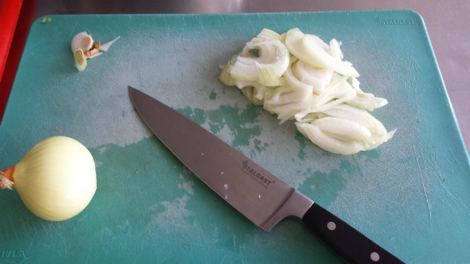 Na sos grzybowy: kurki, cebula, trochę bulionu grzybowego, śmietana, masło, natka pietruszki.