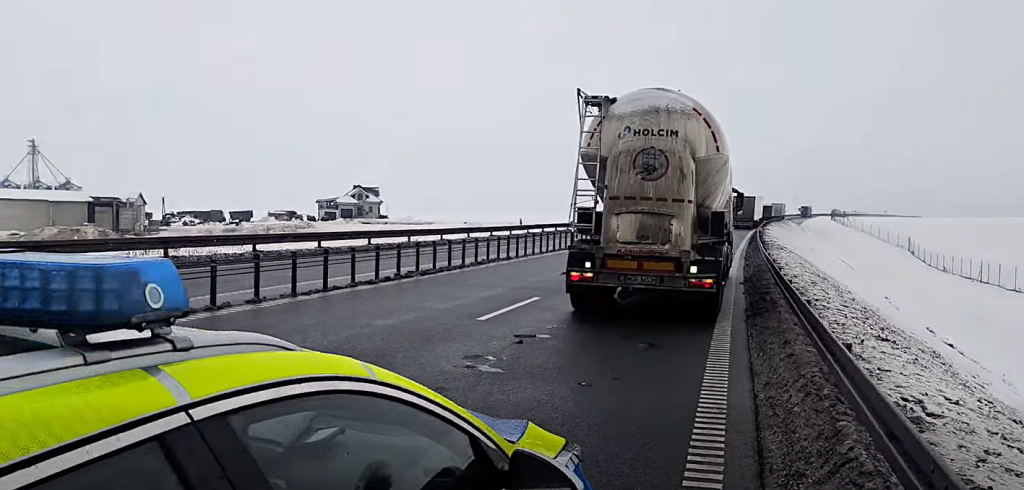 Joanna Miłek z GDDKiA w Olsztynie przekazała, że ze względu na panujące warunki pogodowe DK 15 w kierunku Brodnicy jest zablokowana, pojazd ciężarowy nie może podjechać pod wzniesienie.