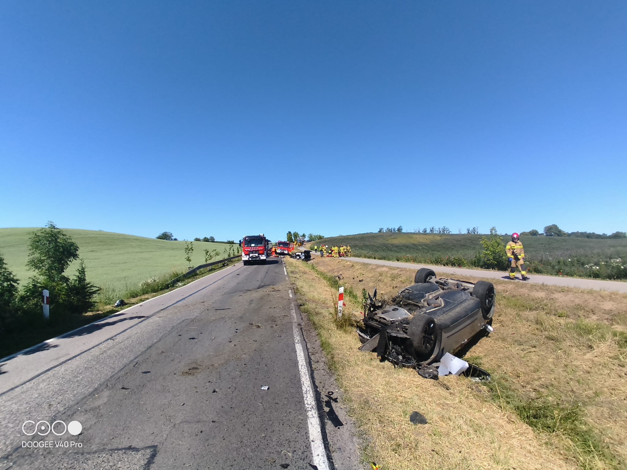 Według wstępnych ustaleń policji kierujący bmw na łuku drogi zjechał na pobocze i stracił panowanie nad pojazdem, następnie zjechał na przeciwległy pas ruchu i zderzył się czołowo z prawidłowo jadącą osobową toyotą. Oba samochody wylądowały w przydrożnym rowie, jeden z nich dachował.