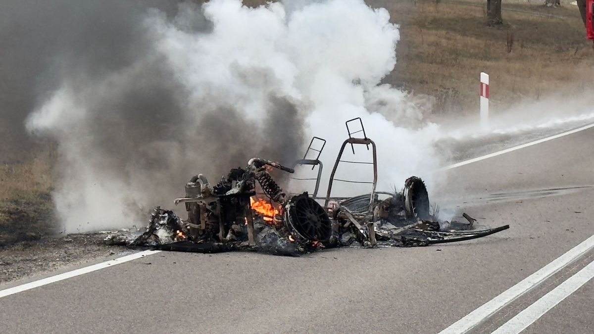 Z ustaleń policjantów wynika że 88-letni mężczyzna kierujący czterokołowcem lekkim podróżował z miejscowości Główka do Grabowa. W trakcie jazdy z nieznanych przyczyn zapalił się jego pojazd. W ostatniej chwili mężczyzna wydostał się z auta. Nie odniósł żadnych obrażeń i nie potrzebował pomocy medycznej