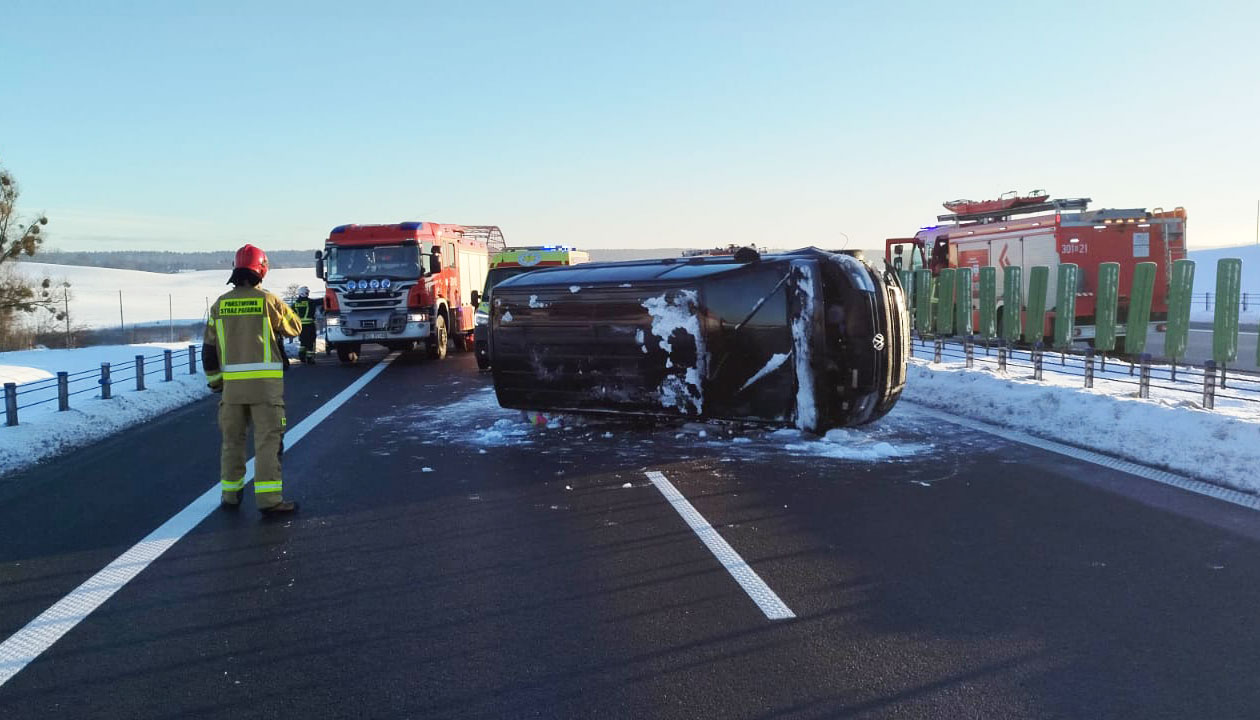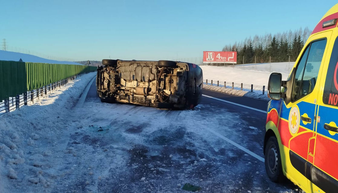 Na wysokości Bartąga dachował bus. Samochodem podróżowały 4 osoby, którym udzielana jest na miejscu pomoc medyczna. Jedna osoba jest ranna.