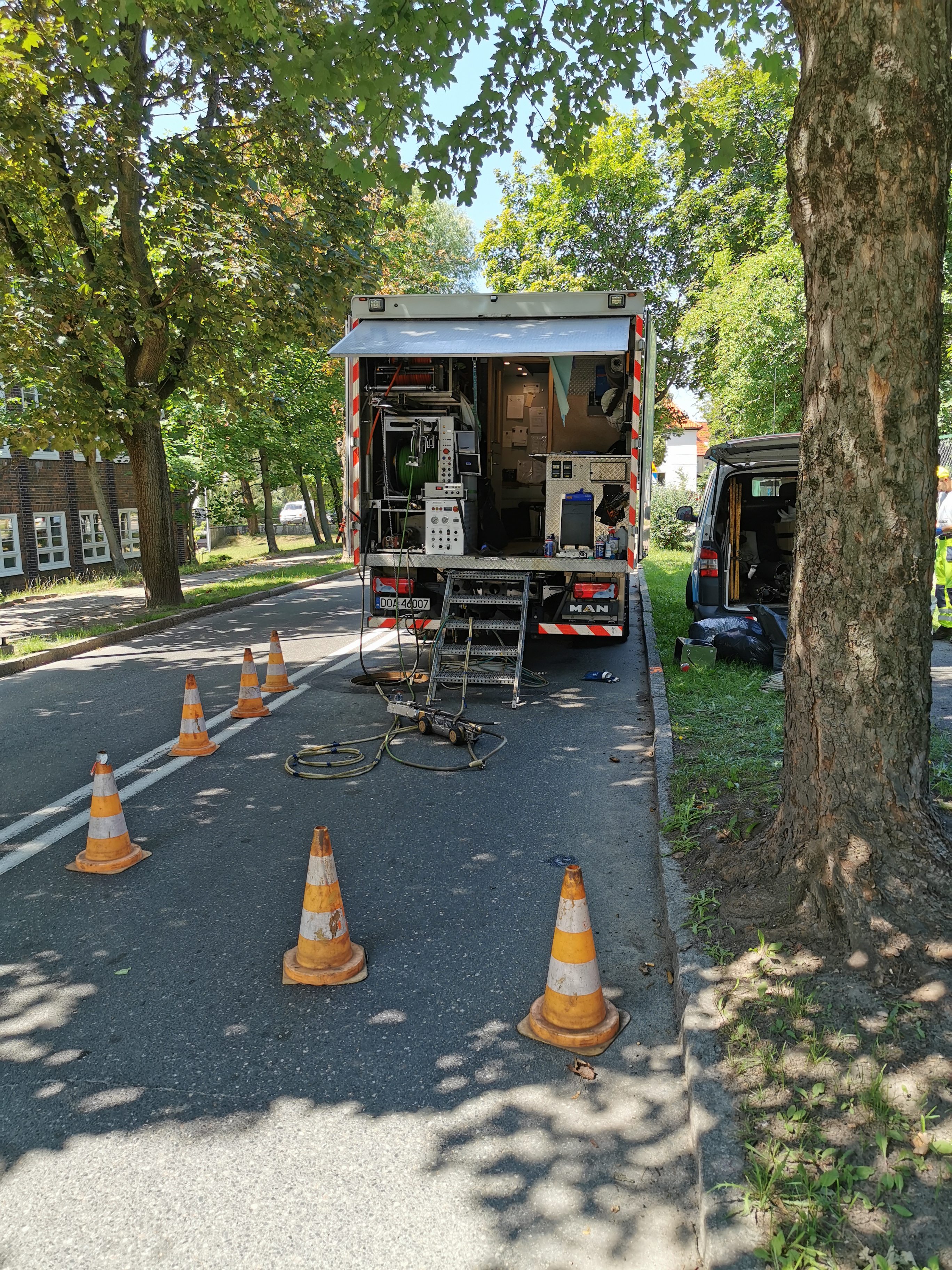 Wody opadowe są podczyszczane i zatrzymywane w tym zbiorniku. Będą wykorzystywane przez nasze przedsiębiorstwo do czyszczenia kanalizacji.