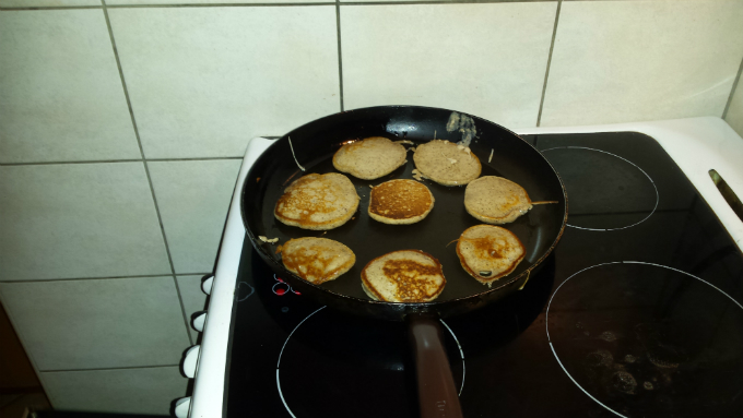 3. Bliny: 200 g mąki gryczanej, 150 g mąki pszennej, 25 g drożdży (świeżych), 2 łyżeczki cukru, 2,5 szklanki mleka, 1 całe jajko, 50 g roztopionego masła, 1 łyżeczka soli, olej do smażenia, jogurt, konfitura.