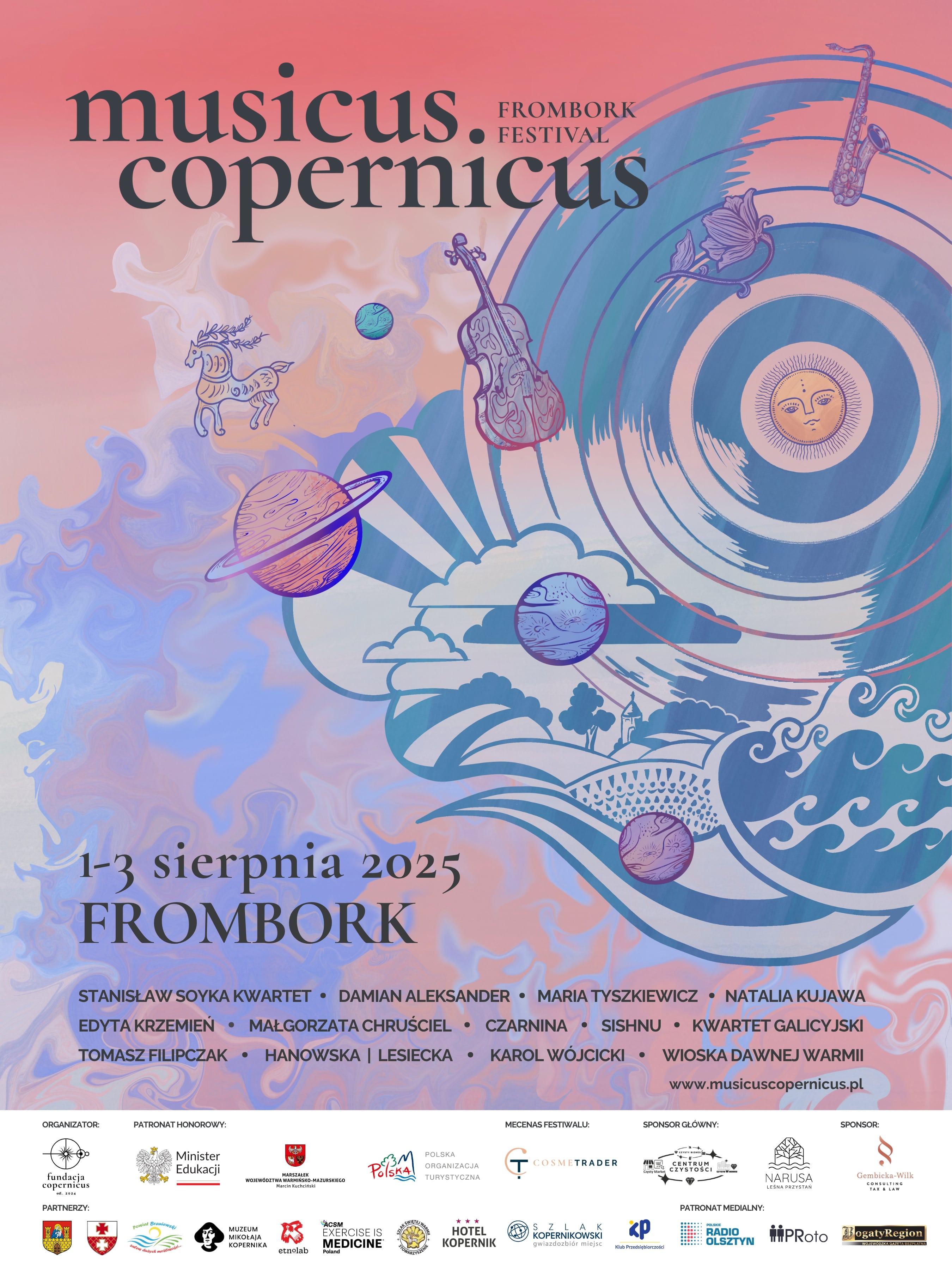 W pierwszy weekend sierpnia Frombork ponownie stanie się centrum muzyki, kultury i historii. Przed nami druga edycja musicus copernicus FROMBORK FESTIVAL, czyli trzy dni koncertów, wykładów, warsztatów i spotkań z dziedzictwem Warmii. Tegoroczna odsłona wydarzenia odbędzie się pod hasłem „o obrotach sfer muzycznych”.