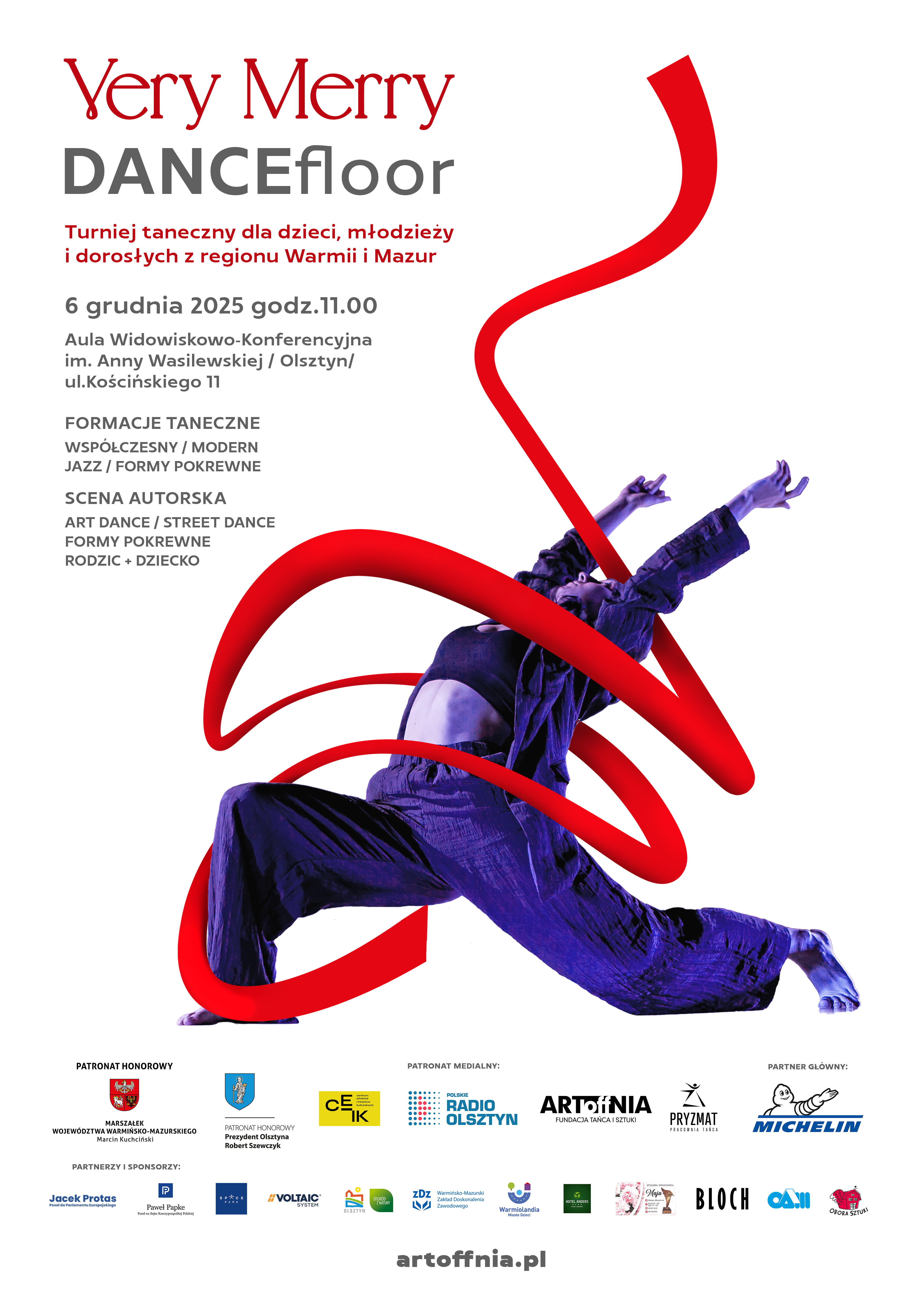 Regionalny Turniej Taneczny Very Merry DANCEfloor ponownie zgromadzi na scenie tancerzy z całej Warmii i Mazur, oferując im przestrzeń do prezentacji talentu, wyobraźni i twórczej energii. To wydarzenie, które od lat inspiruje do artystycznych poszukiwań i rozwija lokalną społeczność taneczną, a tegoroczna edycja zapowiada się szczególnie interesująco dzięki połączeniu formuły autorskich choreografii z prezentacjami zespołów tanecznych.