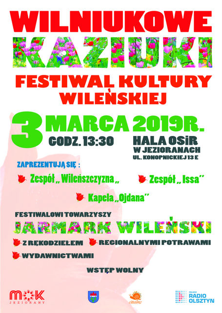 Wilniukowe Kaziuki to wydarzenie, które już po raz trzeci zagości w Jezioranach. Tegoroczna odsłona Festiwalu z Kulturą Litewską obfitować będzie w prezentacje i występy różnych zespołów pieśni i tańca ludowego. Nie zabraknie również stoisk z rękodziełem oraz regionalnych produktów i potraw.