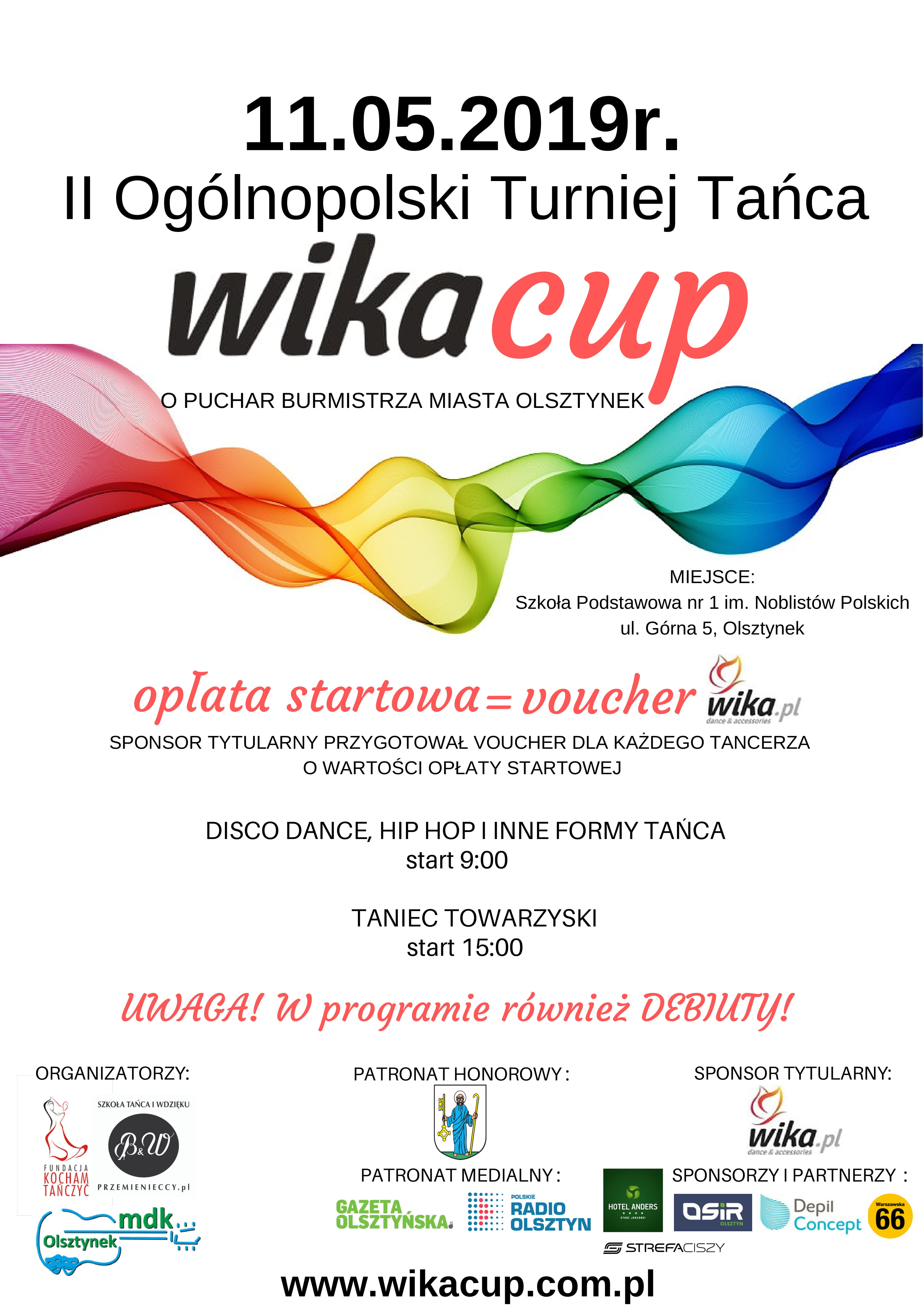 11 maja w hali sportowej przy Szkole Podstawowej nr 1 im. Noblistów Polskich w Olsztynku odbędzie się II Ogólnopolski Turniej Tańca Wika Cup o Puchar Burmistrza miasta Olsztynek.