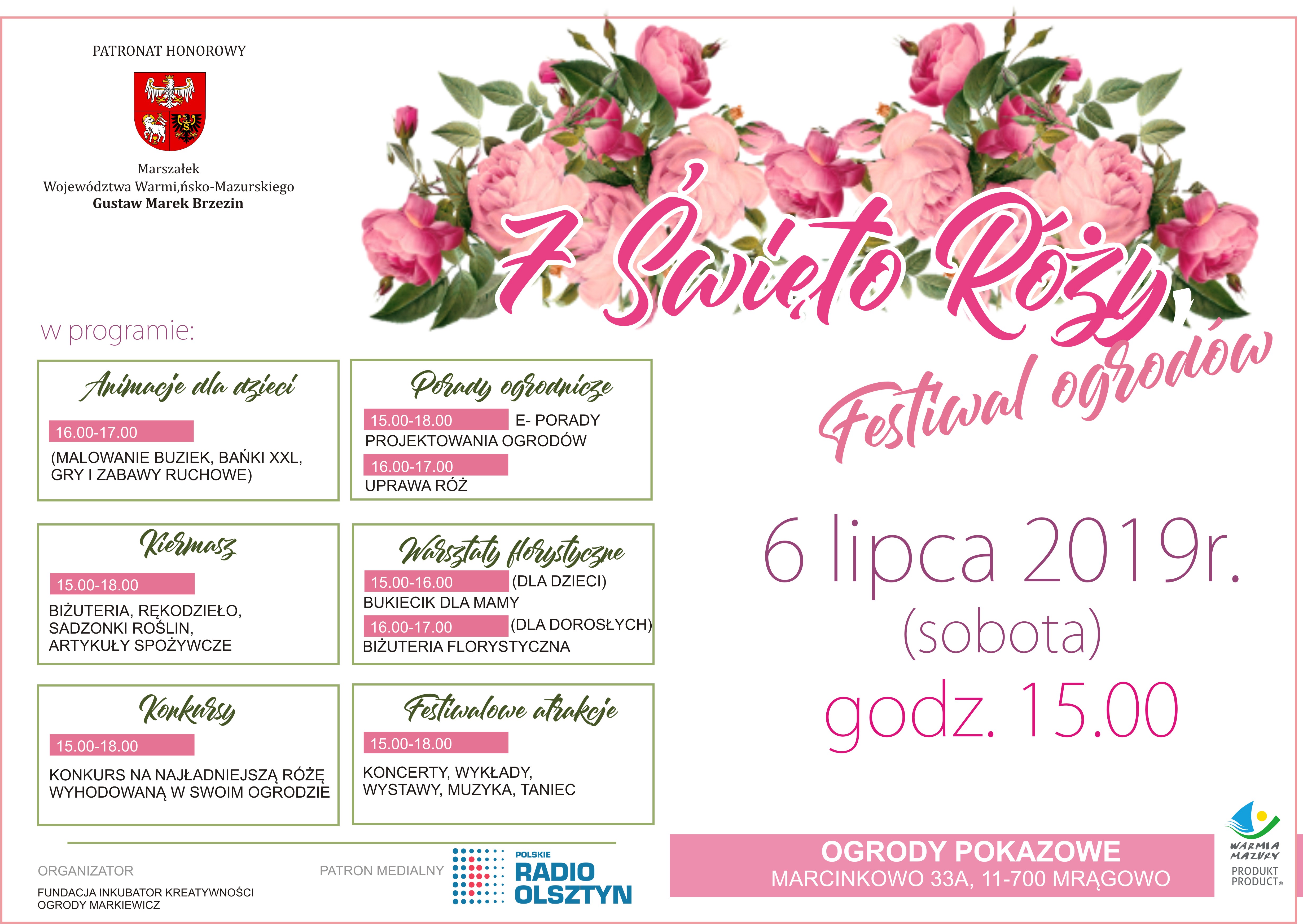 Po raz kolejny w Ogrodach Pokazowych w Marcinkowie odbędzie się Święto Róży – Festiwal Ogrodów. Siódma edycja tego wydarzenia przyciągnie z pewnością niejednego miłośnika ogrodów, sztuki w plenerze czy biesiadnej muzyki. W programie między innymi: porady ogrodnicze, warsztaty oraz konkursy i animacje.