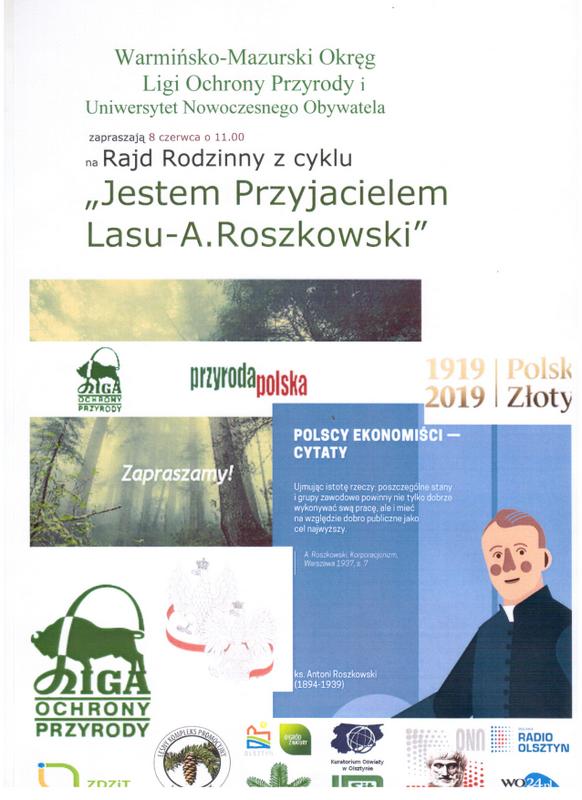 Warmińsko-Mazurski Okręg Ligi Ochrony Przyrody i Uniwersytet Nowoczesnego Obywatela zapraszają na Arystotelesowski Rajd Rodzinny z cyklu „Jestem Przyjacielem Lasu – ks. Antoni Roszkowski”. W programie między innymi: pogadanki o lesie, o oszczędzaniu, o prawie, a także posadzenie dębu pamięci dedykowanego wybitnemu polskiemu ekonomiście, księdzu Antoniemu Roszkowskiemu.