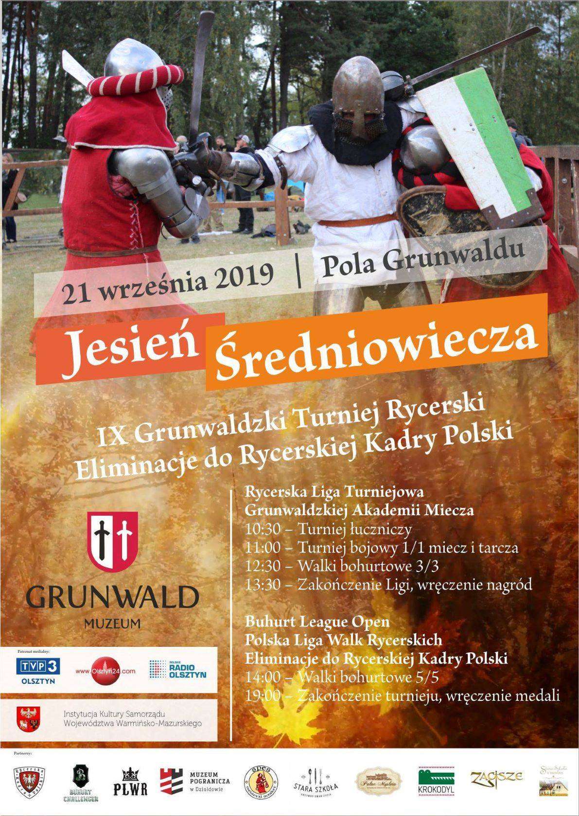 IX Grunwaldzki Turniej Rycerski „Jesień Średniowiecza” odbędzie się 21 września 2019 roku na Polach Grunwaldu. Początek zmagań rozpoczyna się o godz. 10.30.