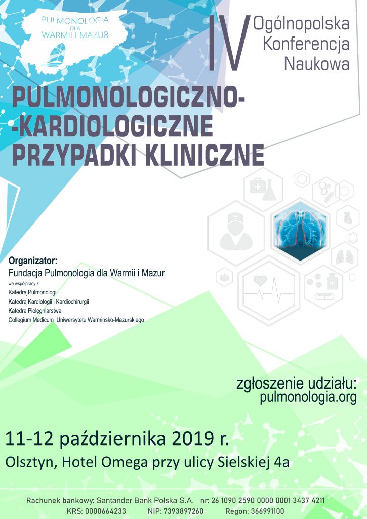 Popularyzacja wiedzy z zakresu pulmonologiczno-kardiologicznego to główny cel organizowanej już po raz czwarty ogólnopolskiej konferencji naukowej “Pulmonologiczno-kardiologiczne przypadki kliniczne”. Na spotkaniu pojawi się ponad dwustu specjalistów z całej Polski, którzy podzielą się swoją wiedzą i doświadczeniami na temat diagnostyki i leczenia chorób płuc i serca. Podczas konferencji przedstawione zostaną najnowsze standardy oraz przeprowadzone zostaną warsztaty dla personelu medycznego. Konferencja jest również dorocznym forum promującym nowoczesne rozwiązania poprawy stanu zdrowia mieszkańców kraju i regionu.