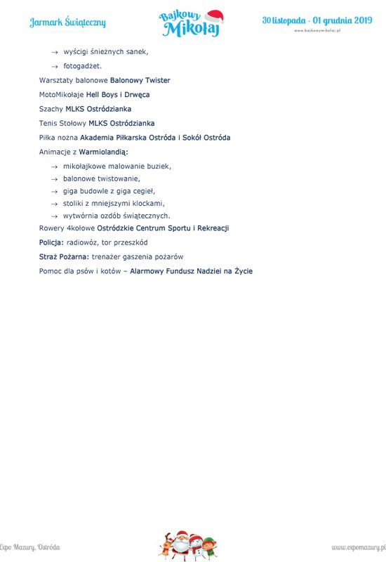 Program imprezy poniżej lub pod adresem: http://bajkowymikolaj.pl/#fair_content