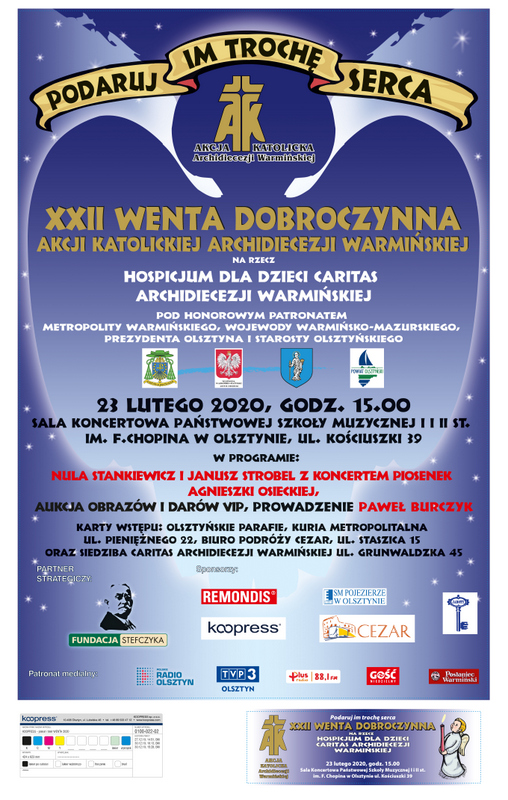 Akcja Katolicka Archidiecezji Warmińskiej od dwudziestu dwóch lat organizuje Wentę Dobroczynną, z której dochód przekazywany jest na rzecz ośrodków zajmujących się wsparciem osób potrzebujących. W tym roku zebrane środki finansowe trafią do powstającego Hospicjum Stacjonarnego dla Dzieci, prowadzonego przez Caritas Archidiecezji Warmińskiej. W programie, jak co roku, znalazła się aukcja obrazów i darów przekazanych przez polityków, artystów i ludzi dobrej woli. Licytację poprowadzi aktor Paweł Burczyk.