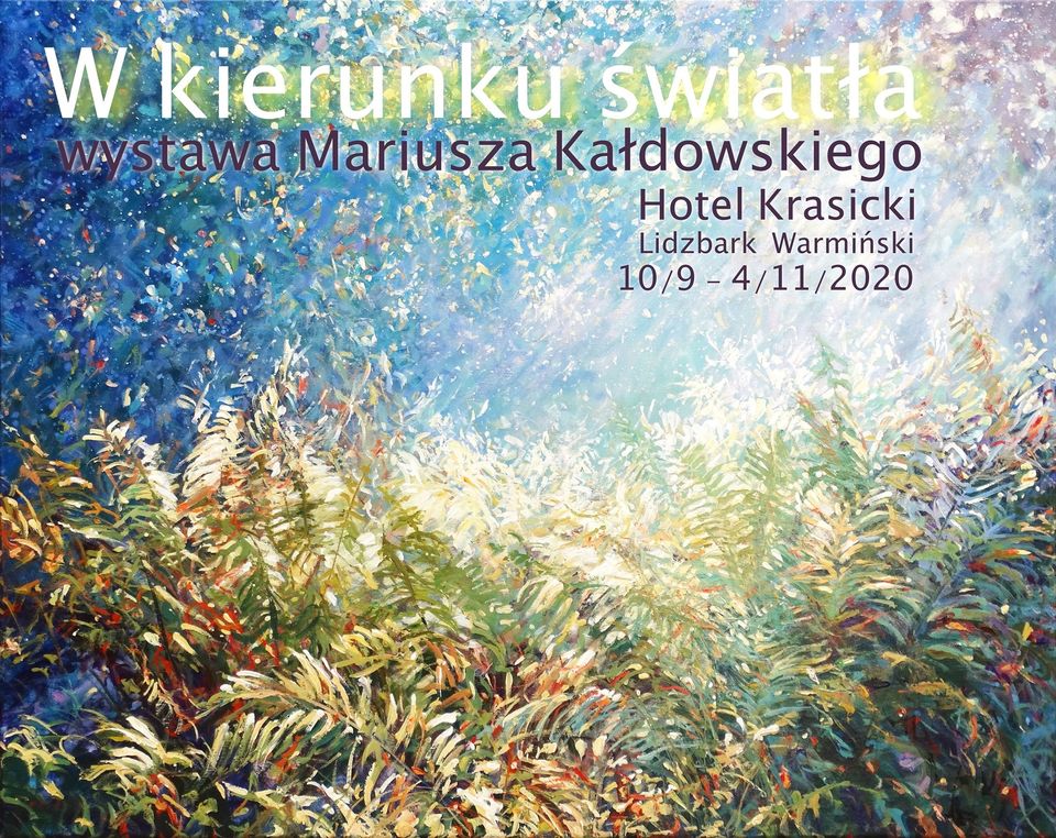 10 września w Hotelu Krasicki zaprezentowane zostaną prace Mariusza Kałdowskiego - malarza, rysownika i grafika. W latach 1996 – 2014 mieszkał, tworzył i wystawiał w Wielkiej Brytanii. Od 2002 - 2013 był artystą rezydentem w londyńskim Regent Parku, a od 2009 roku pracuje z brytyjskim powiernictwem narodowym National Trust, jako ich artysta malarz na region południowo-wschodniej Anglii. Namalował także cykl reprezentacyjnych ogrodów Północnej Walii. Jego artystyczne odzwierciedlanie natury było wiele razy wyróżniane, w tym: pierwsze miejsce i nagroda redaktora The Artist Magazine w 2006, jak i nagrody ufundowane przez Windsor & Newton, Pro Arte, Caran D’ache i Royal Talens i inne.