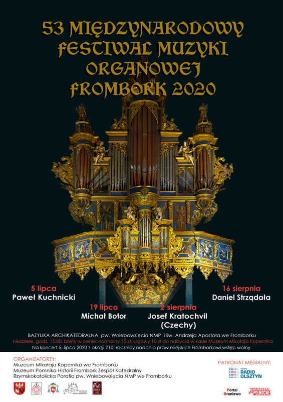 Pierwszy koncert już 5.07.2020, godz. 15:00. Zbiega się on z 710. rocznicą nadania Fromborkowi praw miejskich. Z tej okazji wstęp na koncert będzie wolny, a na fromborskich organach zagra Paweł Kuchnicki - od ubiegłego roku organista katedry we Fromborku.