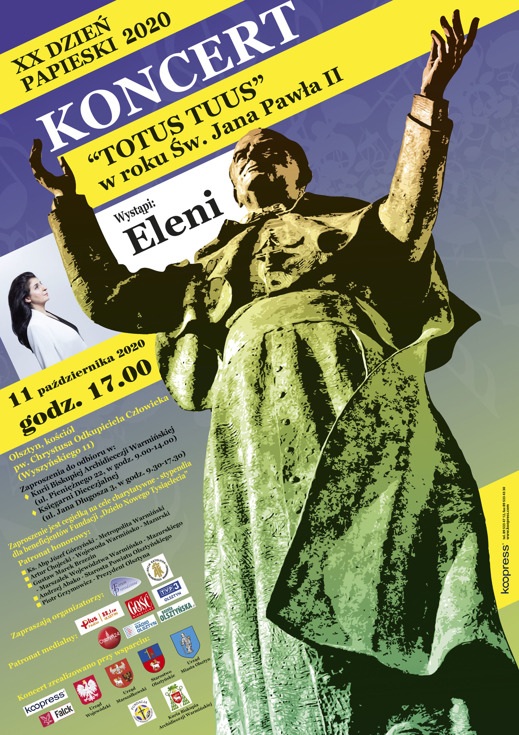 Z okazji obchodzonego Dnia Papieskiego w kościele Chrystusa Odkupiciela Człowieka odbędzie się koncert papieski "Totus Tuus” podczas którego wystąpi ELENI.