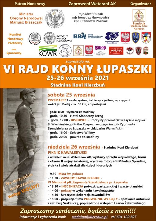Przed nami VI RAJD KONNY KU CZCI I DLA UPAMIĘTNIENIA POSTACI PŁK ZYGMUNTA SZENDZIELARZA PS.ŁUPASZKA.