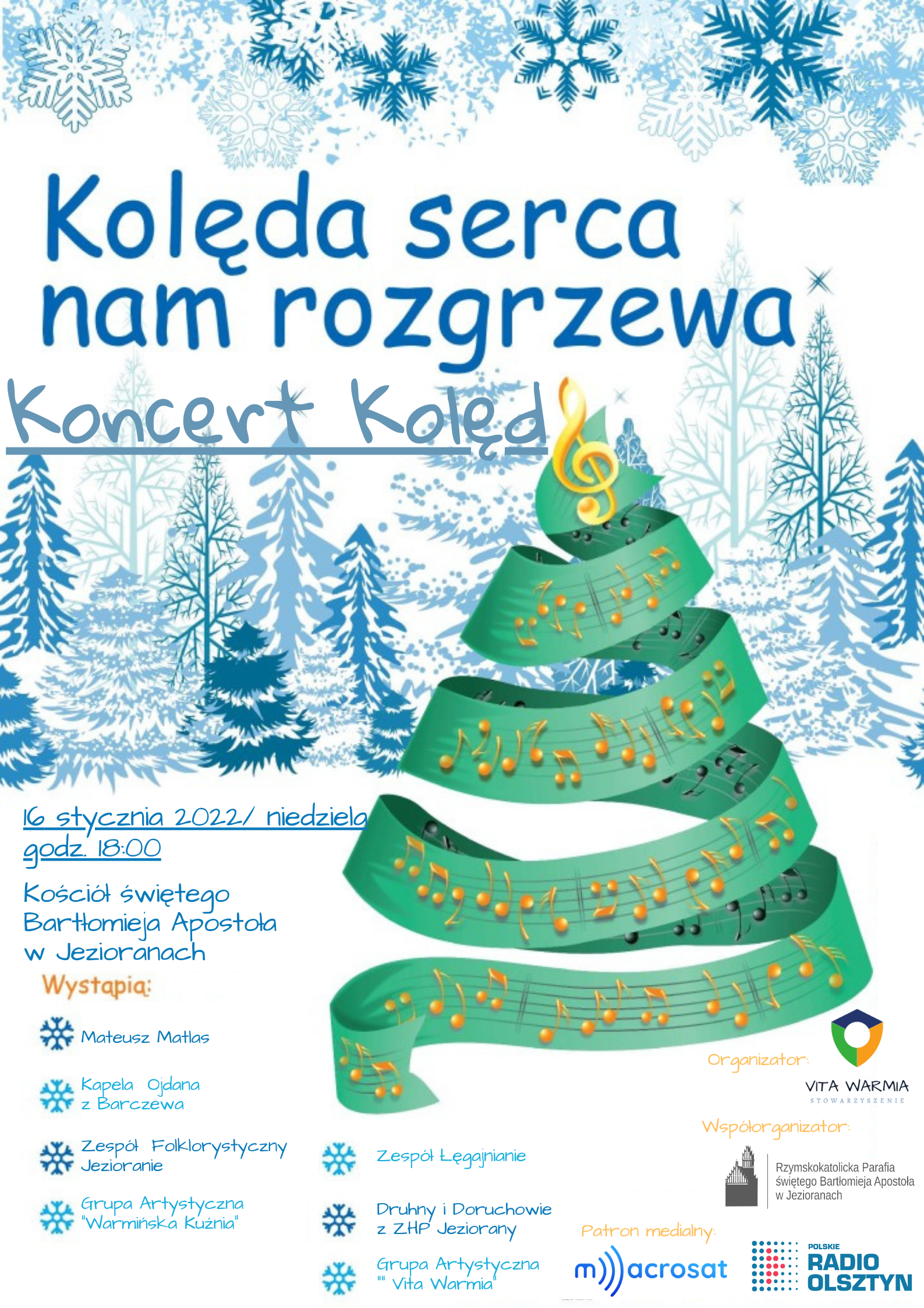 Już po raz trzeci Stowarzyszenie Rozwoju Społecznego Vita Warmia wraz z Parafią Świętego Bartłomieja Apostoła w Jezioranach organizuje koncert kolęd „Kolęda serca nam rozgrzewa”, w którym zaprezentują się lokalni soliści, młodzież i zespoły śpiewacze prezentujące własne interpretacje kolęd i pastorałek.