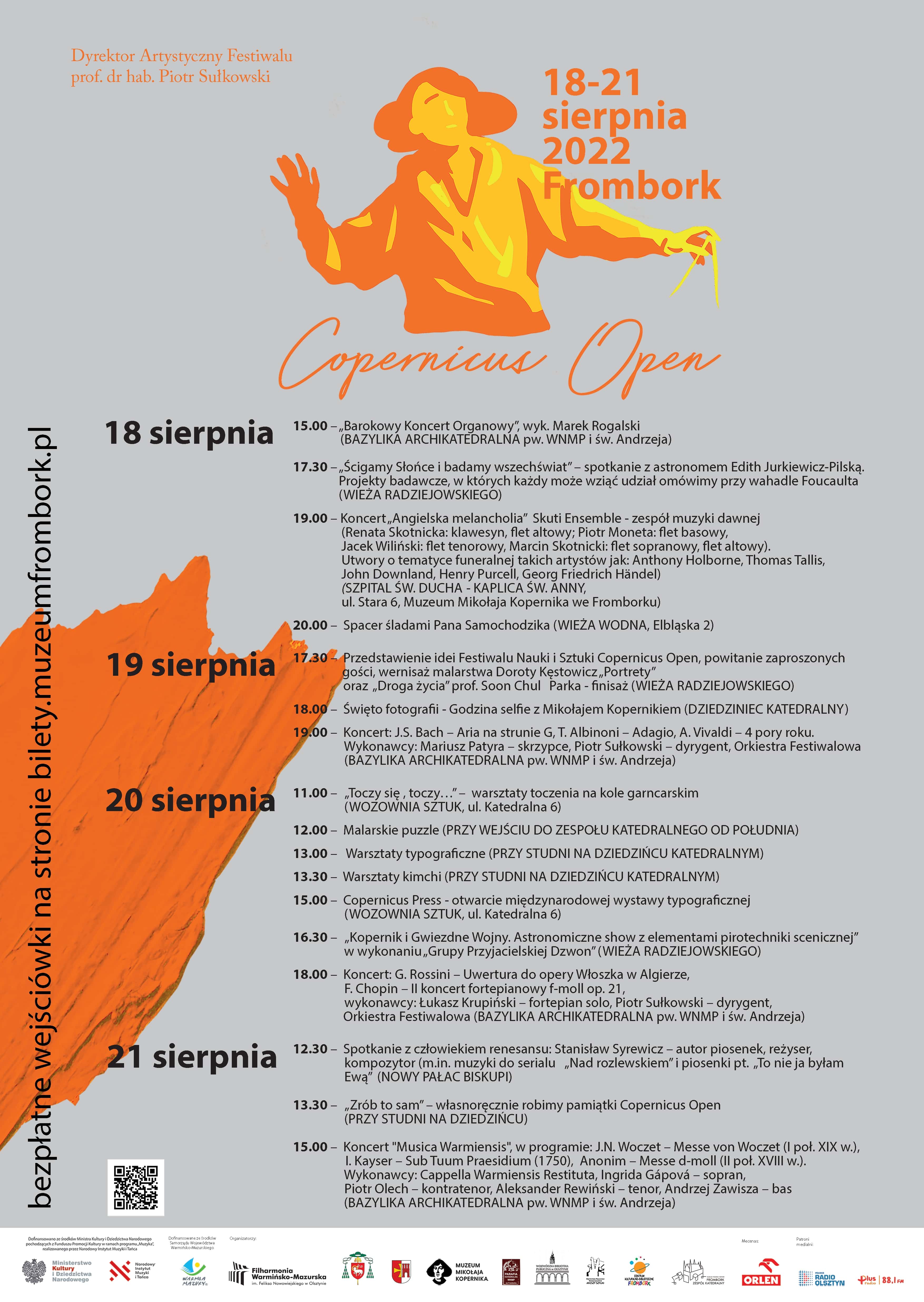 Już po raz trzeci końcówka wakacji we Fromborku wypełniona będzie koncertami, spotkaniami, warsztatami i wystawami. Festiwal Nauki i Sztuki Copernicus Open to czas, w którym organizatorzy chcą zwrócić uwagę na to, że wszechstronny naukowiec Mikołaj Kopernik najdłużej związany był właśnie z Fromborkiem.