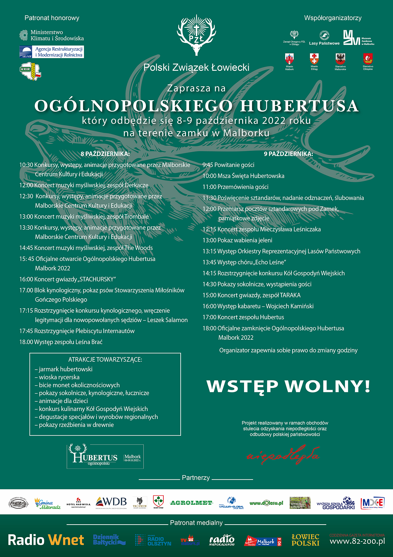 godz. 18.00 – oficjalne zamknięcie Ogólnopolskiego Hubertusa 2022.