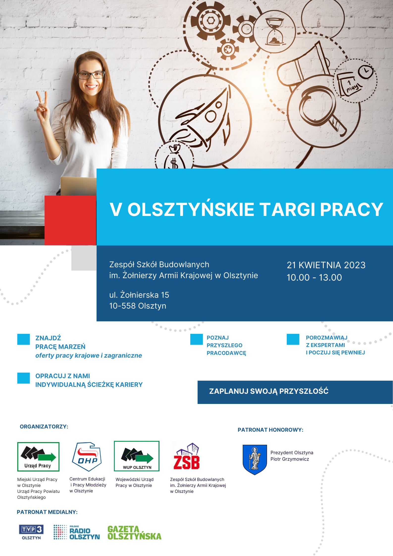 Przed nami V Olsztyńskie Targi Pracy. Wydarzenie to skierowane jest do młodzieży, w tym uczniów i absolwentów, a także osób bezrobotnych i poszukujących pracy z Olsztyna i powiatu olsztyńskiego.