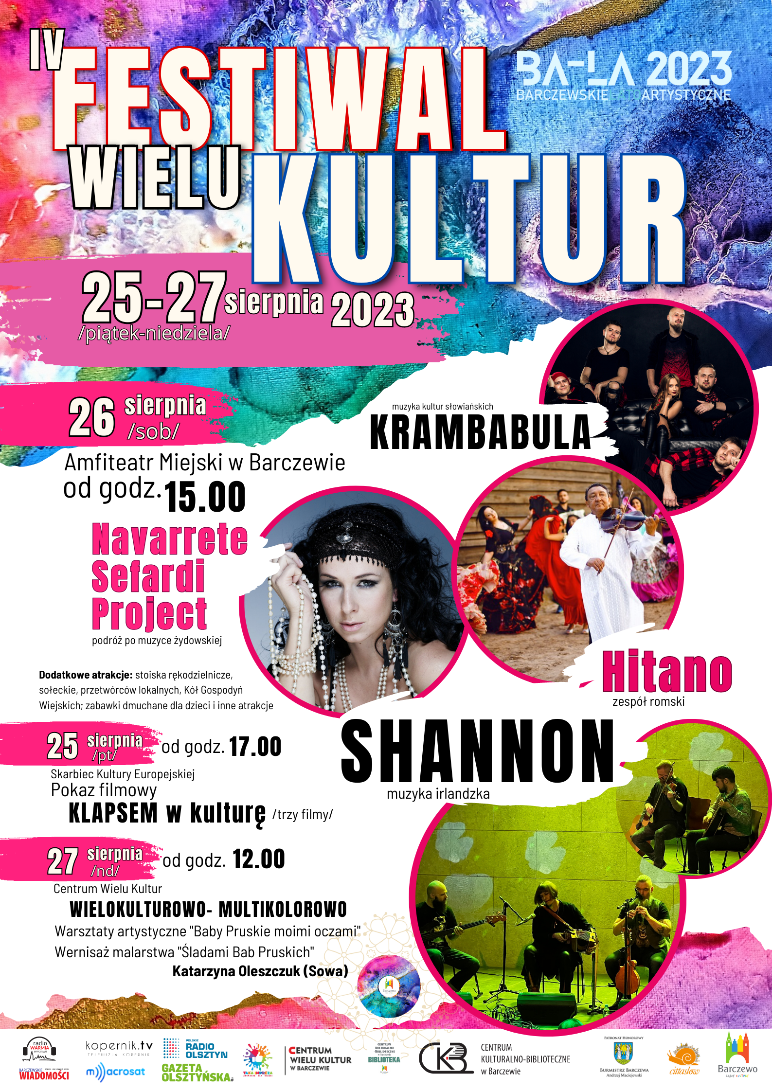 „IV Festiwal Wielu Kultur” w Barczewie to barwne, trzydniowe wydarzenie, które poprowadzi uczestników kilkoma ścieżkami w świat kina, muzyki, sztuki, czy rękodzieła. Festiwal wpisał się już na stałe w kalendarz wydarzeń proponowanych przez Centrum Kulturalno-Biblioteczne w Barczewie.