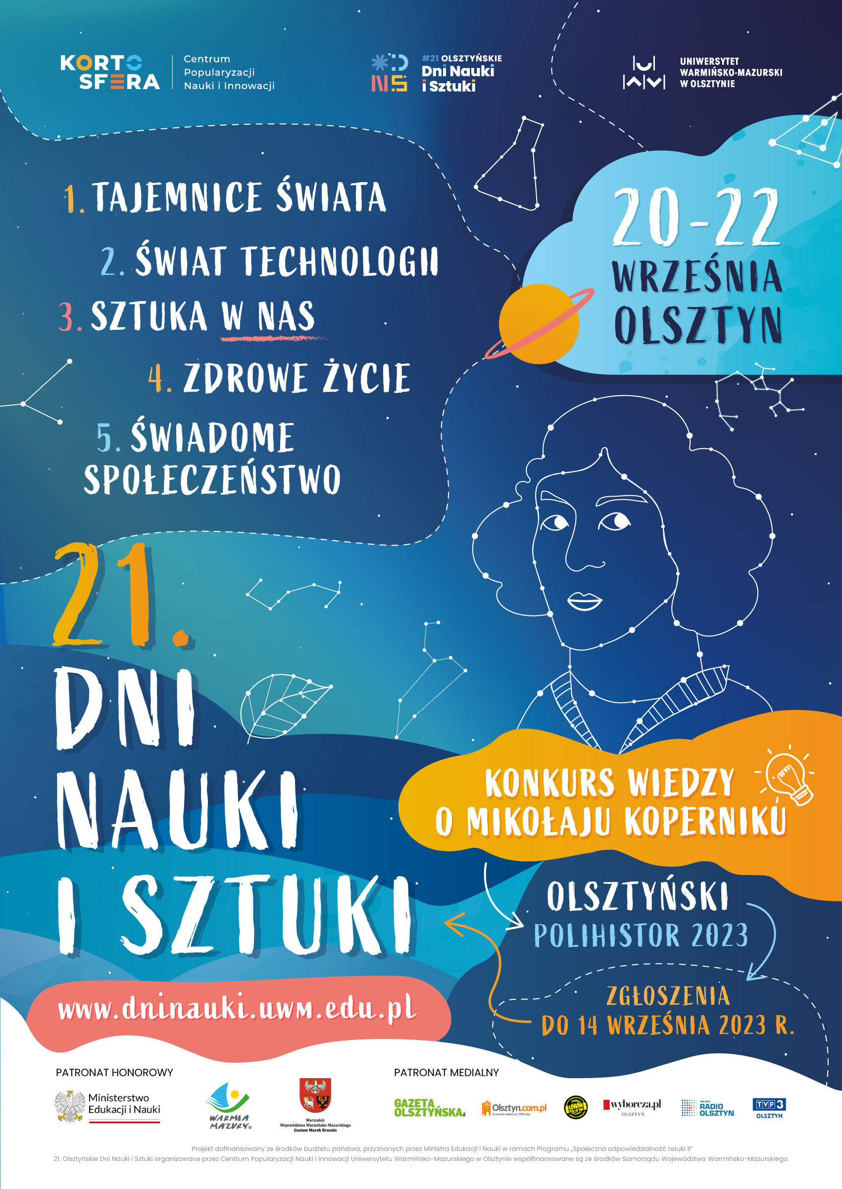 Tegoroczny program ODNiS został podzielony na 5 paneli tematycznych: TAJEMNICE ŚWIATA,ZDROWE ŻYCIE, ŚWIAT TECHNOLOGII, SZTUKA W NAS oraz ŚWIADOME SPOŁECZEŃSTWO. W ich ramach zostaną zrealizowane warsztaty, wystawy, pokazy, wykłady, animacje dla dzieci, konkursy oraz wystawy mobilne przygotowane i poprowadzone przez pracowników UWM oraz partnerów wydarzenia. Tematem przewodnim tegorocznej edycji Festiwalu jest astronomia, a to za sprawą postaci Mikołaja Kopernika – patrona roku 2023.