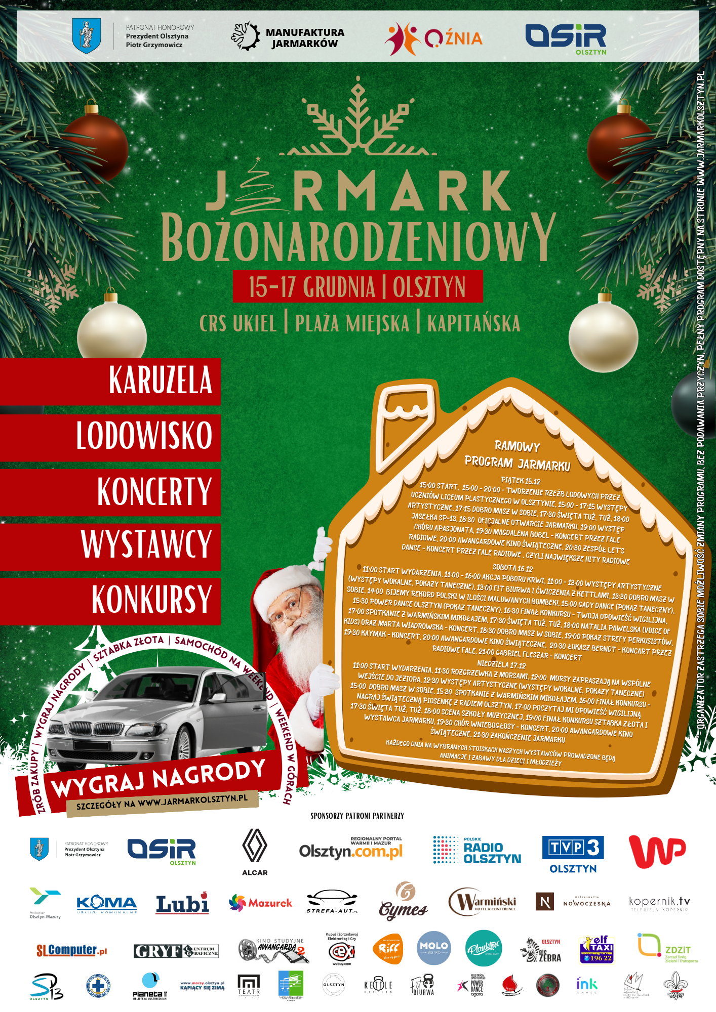Po raz pierwszy w Olsztynie Jarmark Bożonarodzeniowy zagości na Plaży Miejskiej. Od lat przestrzeń CRS Ukiel, idealnie sprawdza się jako miejsce imprez kulturalnych i sportowych. Świątecznych doznań dostarczy ponad 110 wystawców z regionu i kraju, a wśród nich zobaczycie: rękodzielnicy, rzemieślnicy, producenci artykułów spożywczych, także prezentów czy ozdób świątecznych.