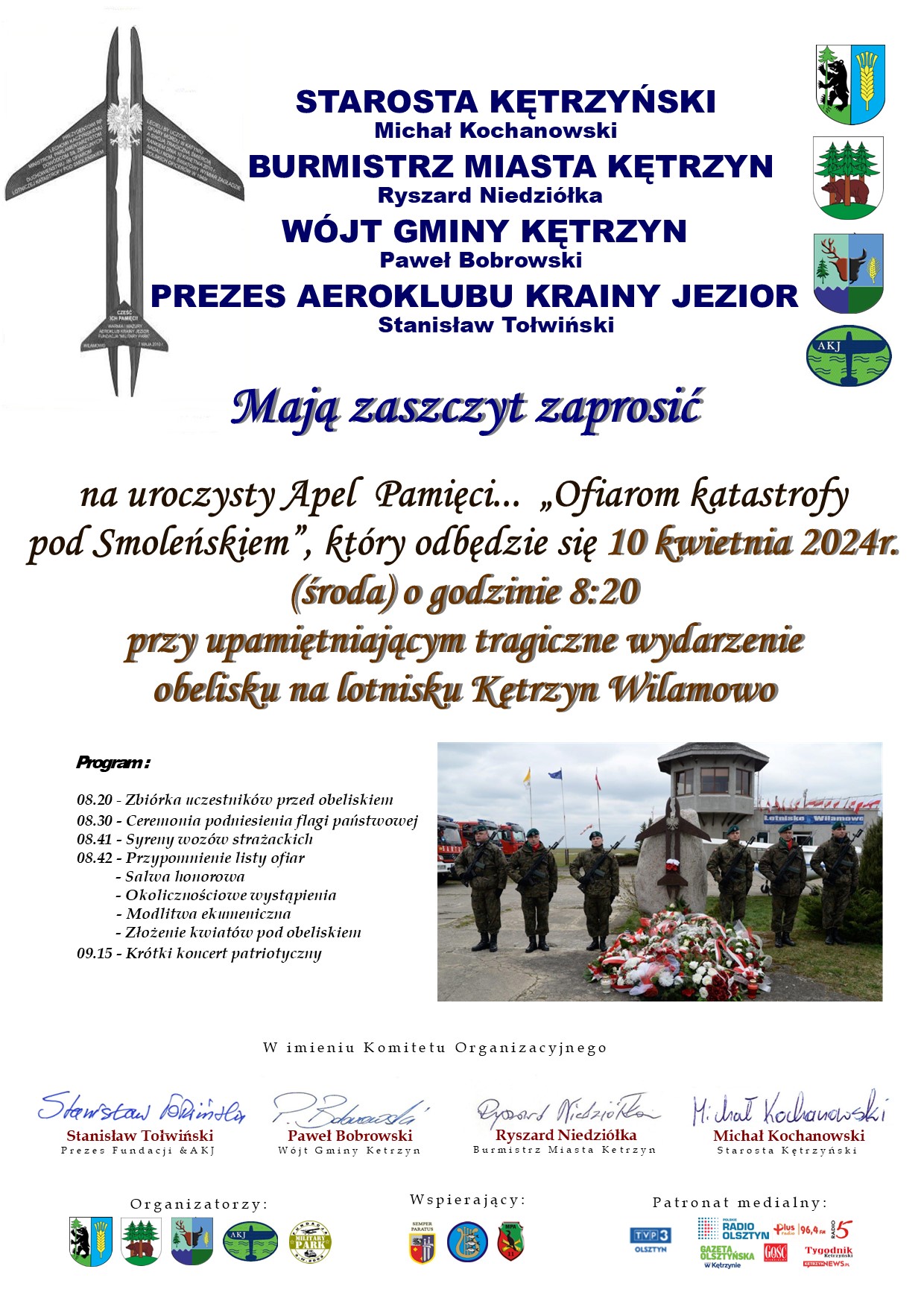Już po raz czternasty na Lotnisku Kętrzyn Wilamowo odbędzie się wyjątkowy Apel Pamięci zadedykowany ofiarom katastrofy pod Smoleńskiem.
