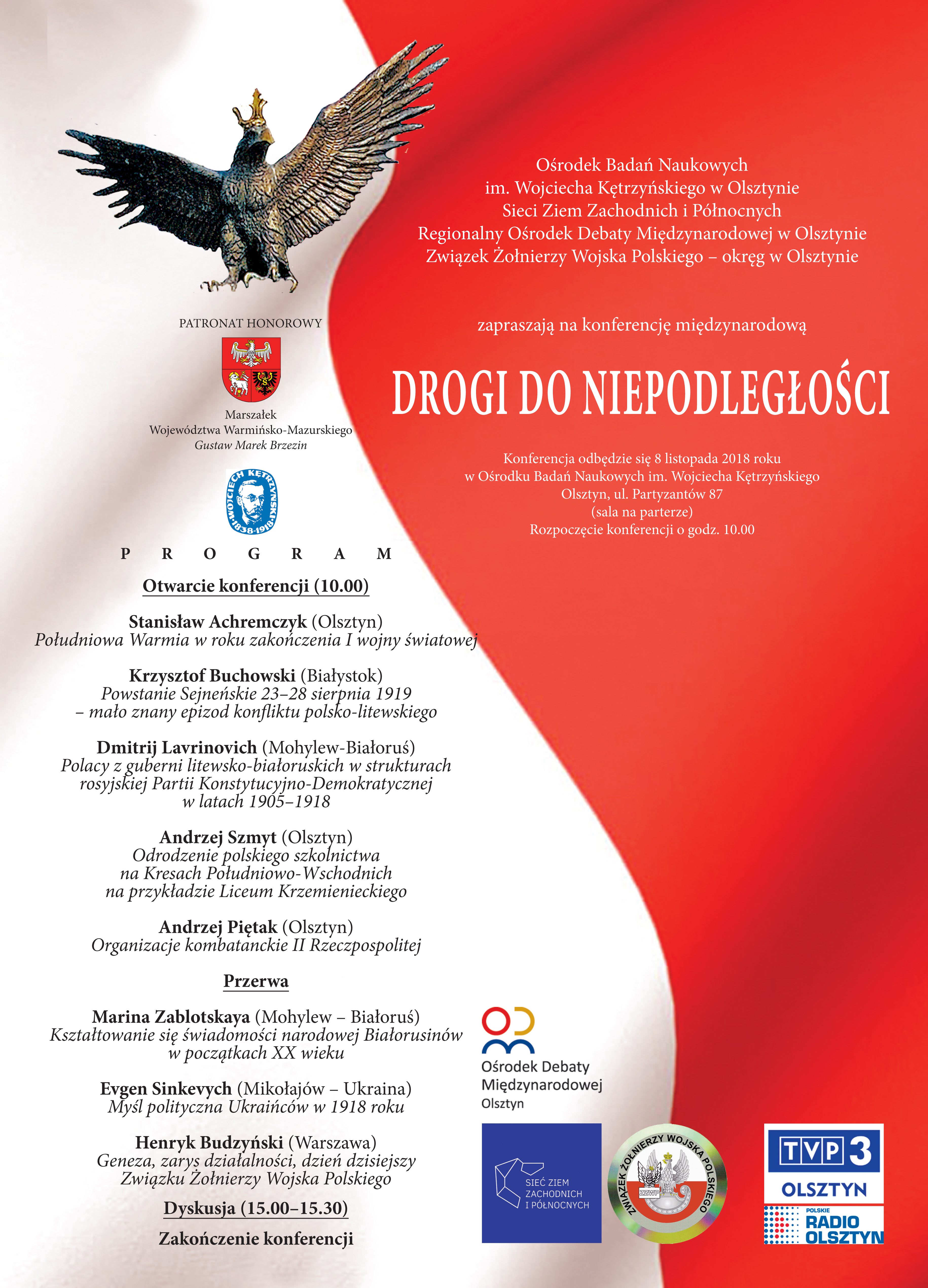 Międzynarodowa konferencja naukowa organizowana przez Ośrodek Badań Naukowych im. W. Kętrzyńskiego w Olsztynie jest punktem kulminacyjnym obchodów setnej rocznicy odzyskania niepodległości przez Polskę.