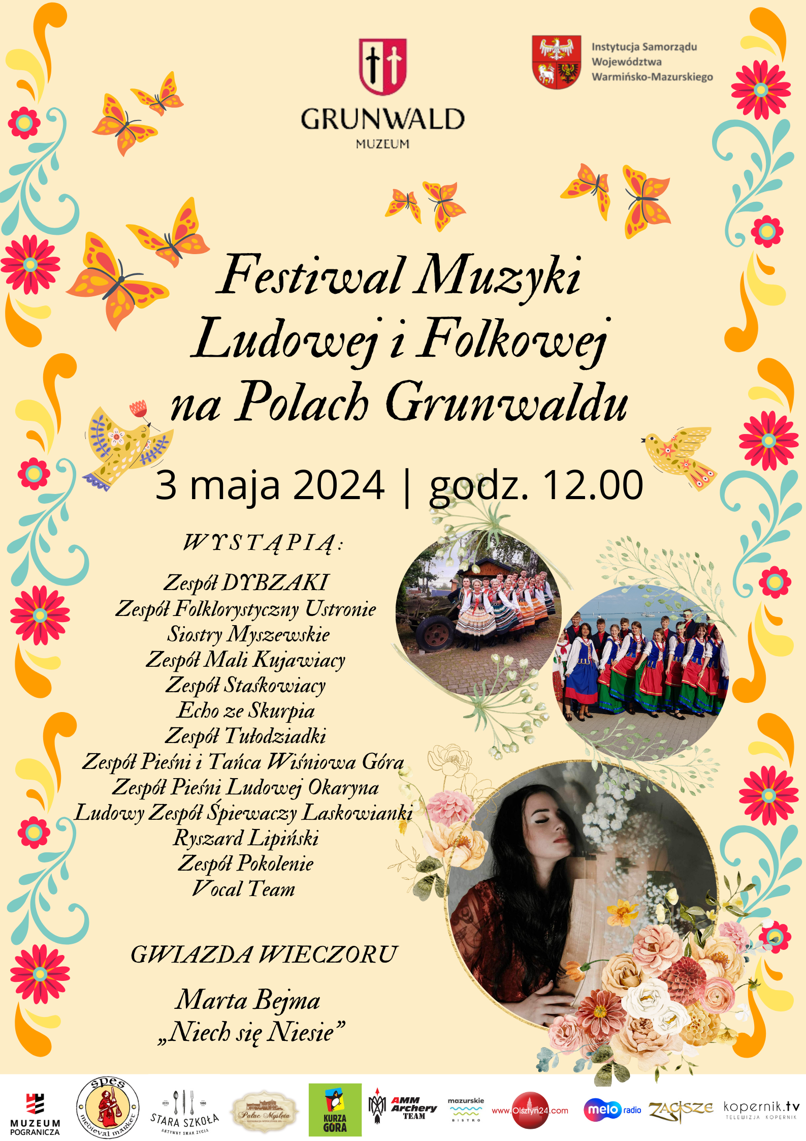 Festiwal Muzyki Ludowej i Folkowej na Polach Grunwaldu to pierwsza tego typu impreza na Polach Bitwy Grunwaldzkiej. Na muzycznej scenie wystąpi prawie 200 artystów prezentujących muzykę folkowa i ludową. Artyści ubrani będą w lokalne tradycyjne stroje ludowe ze swoich regionów. Swoje występy muzyczne okraszą akompaniamentem instrumentów oraz tańcem.