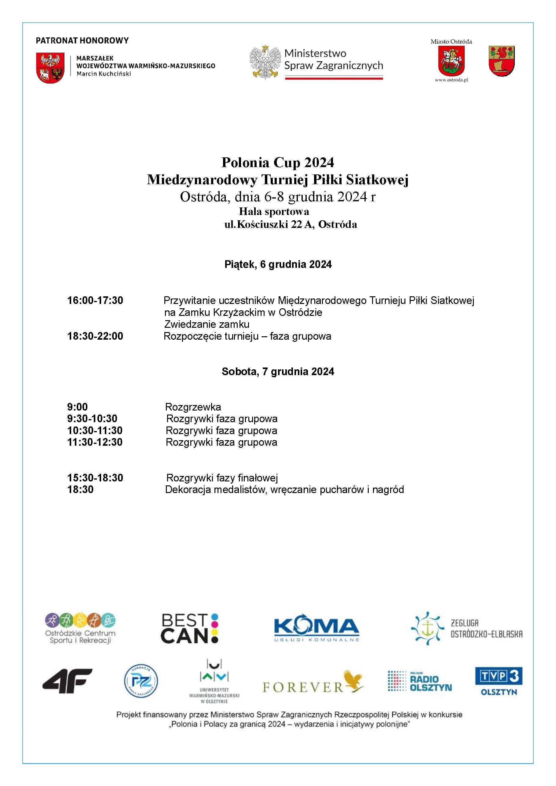 "Polonia Cup 2024" to wyjątkowe wydarzenie sportowe, które zgromadzi drużyny polonijne z całej Europy, celebrując siatkówkę, integrację i polskie dziedzictwo kulturowe. Turniej odbędzie się w dniach 6–8 grudnia 2024 r. w Ostródzie, a jego organizatorem jest Fundacja Pawła Zagumnego.