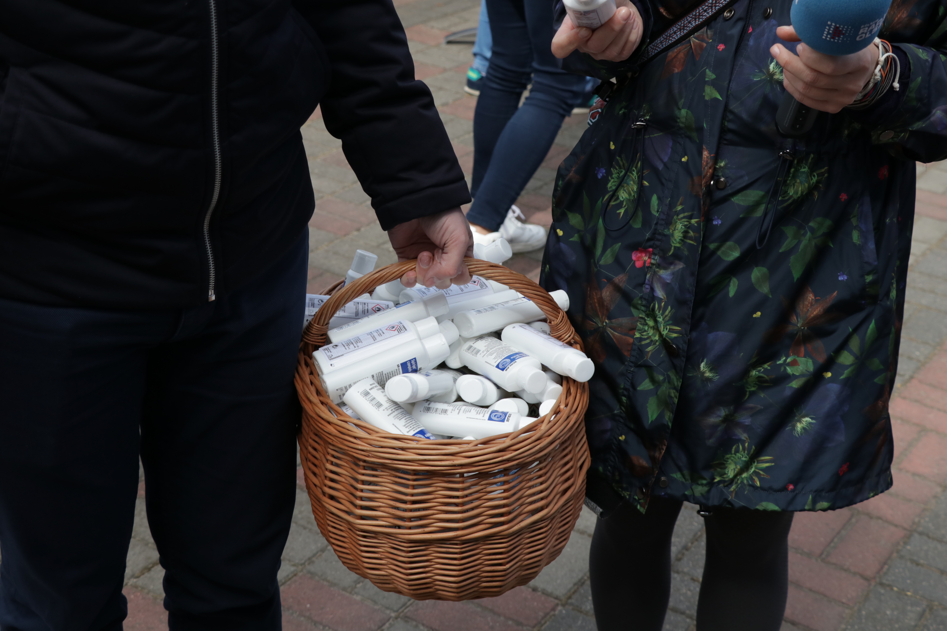 Wspólne, prawidłowe mycie rąk rozpoczęło się w południe przed olsztyńskim sanepidem przy ul. Żołnierskiej.