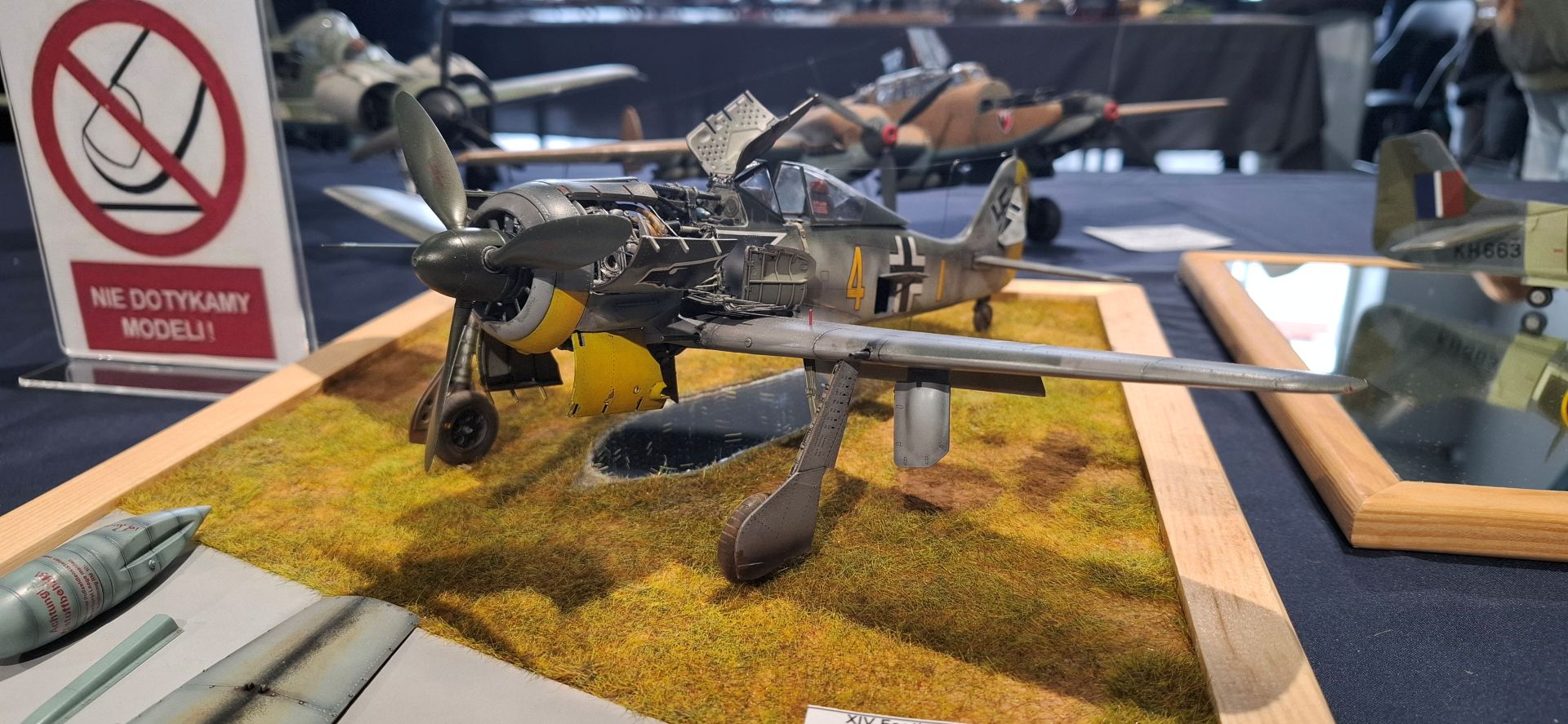 Rafał Dąbrowski z grudziądzkiego klubu Valkyria przywiózł do Olsztyna model samolotu Focke-Wulf 190 w skali 1:32. – Model wykonany jest w oparciu o dokumentację zdjęciową. Każde odrapanie, każde osmolenie jest odzwierciedlone na podstawie zdjęcia – opowiada z dumą modelarz. Jak dodaje, choć wierny jest lotnictwu, to czasami dla podniesienia swoich umiejętności tworzy także modele pojazdów gąsienicowych. Większość elementów jego modeli wykonywana jest własnoręcznie na podstawie planów i dokumentacji, co świadczy o ogromnej precyzji i zaangażowaniu. Prezentowany Focke-Wulf posiada nawet swojego pilota z imienia i nazwiska – Oberleutnanta Waldemara Radanera, który, jak podkreśla pan Rafał, jest postacią historyczną.