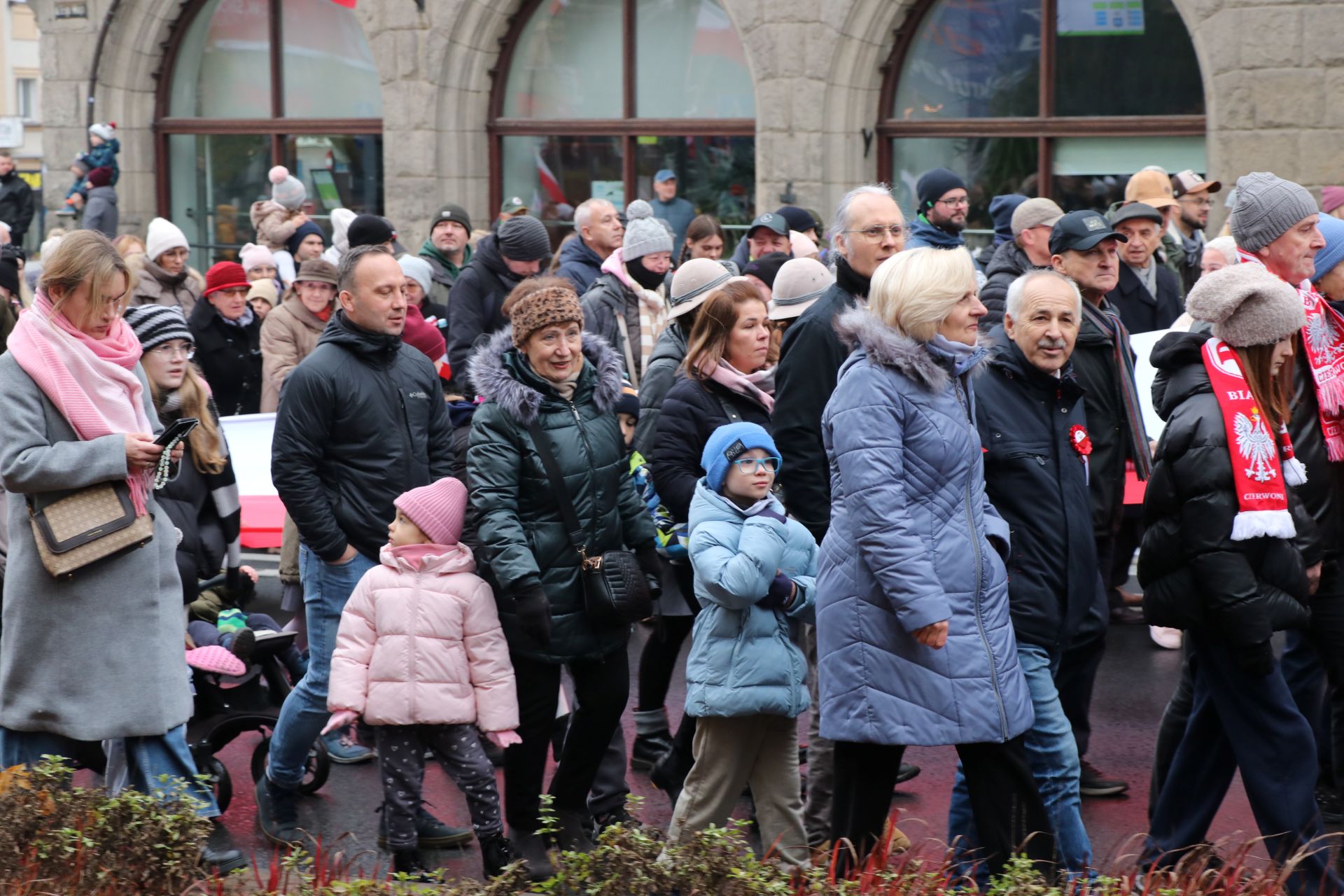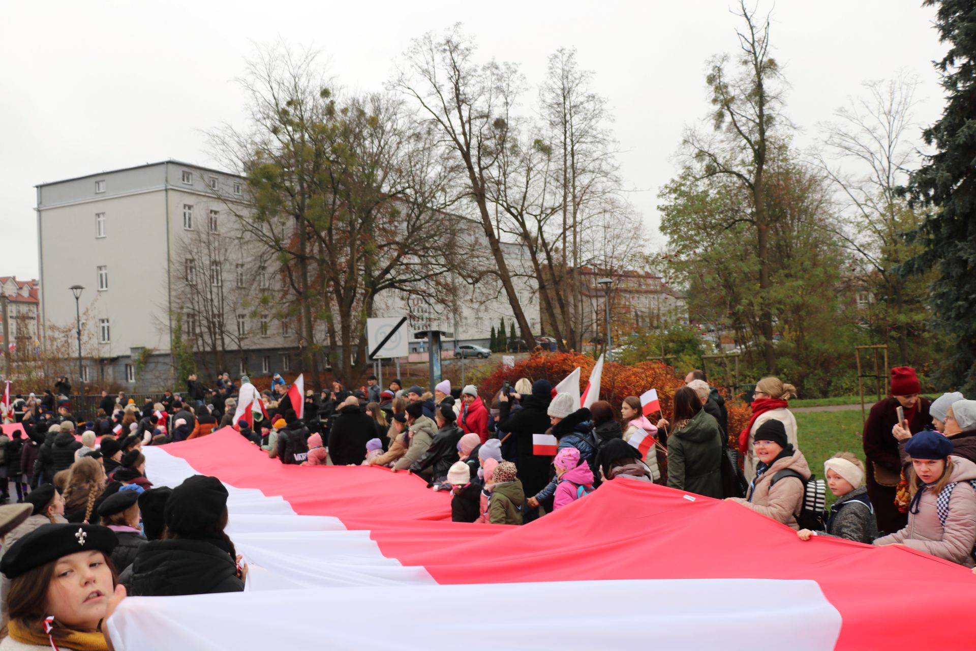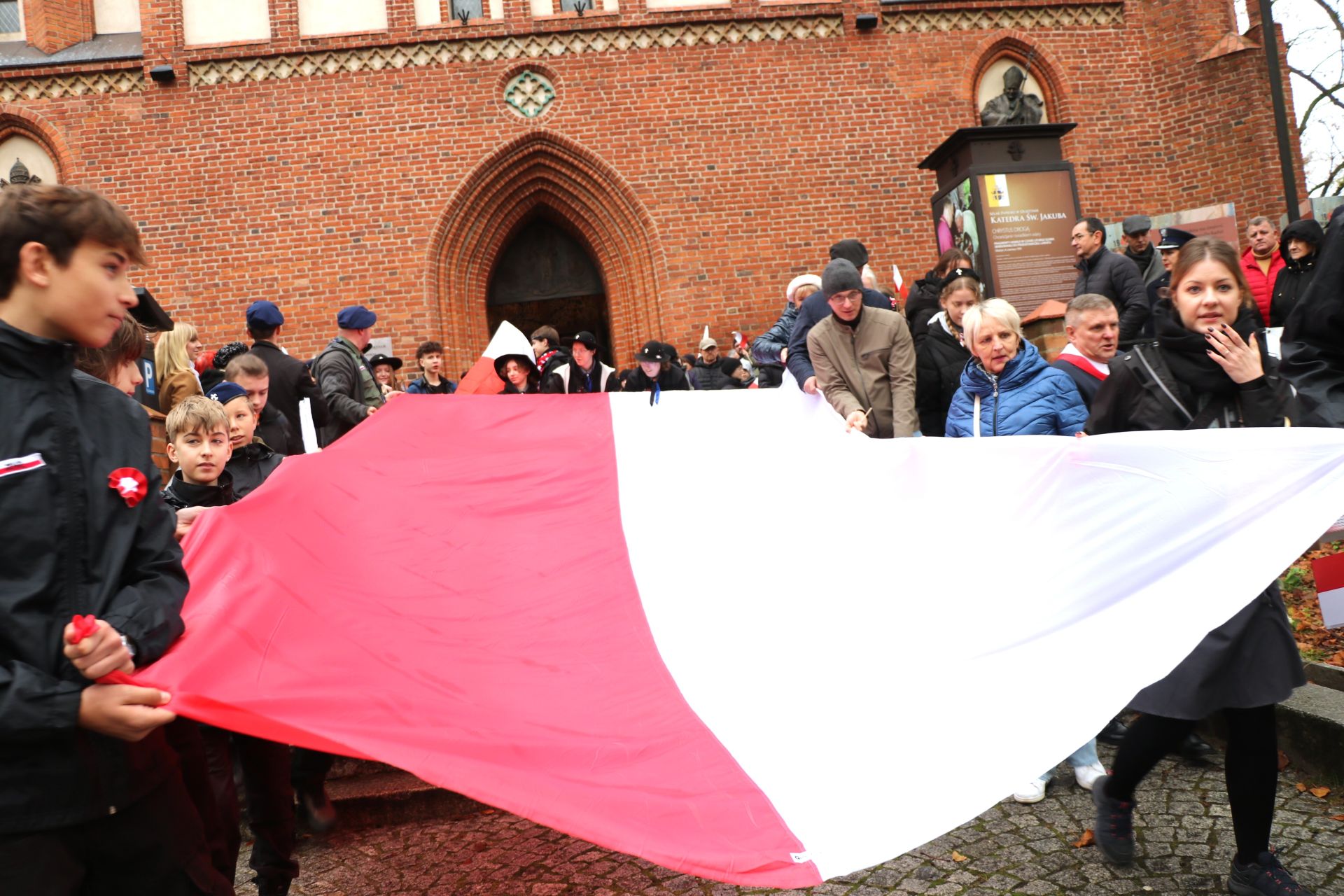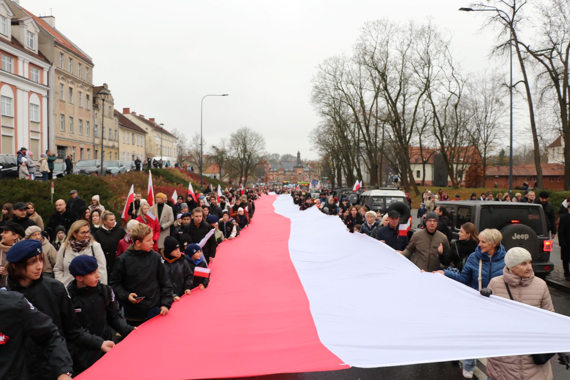 Harcerze i mieszkańcy Olsztyna wspólnie nieśli stumetrową biało-czerwoną flagę, symbol jedności i pamięci o historii. W ten sposób rozpoczęto obchody Narodowego Święta Niepodległości w Olsztynie, których kulminacją były uroczystości na Placu Konsulatu Polskiego.