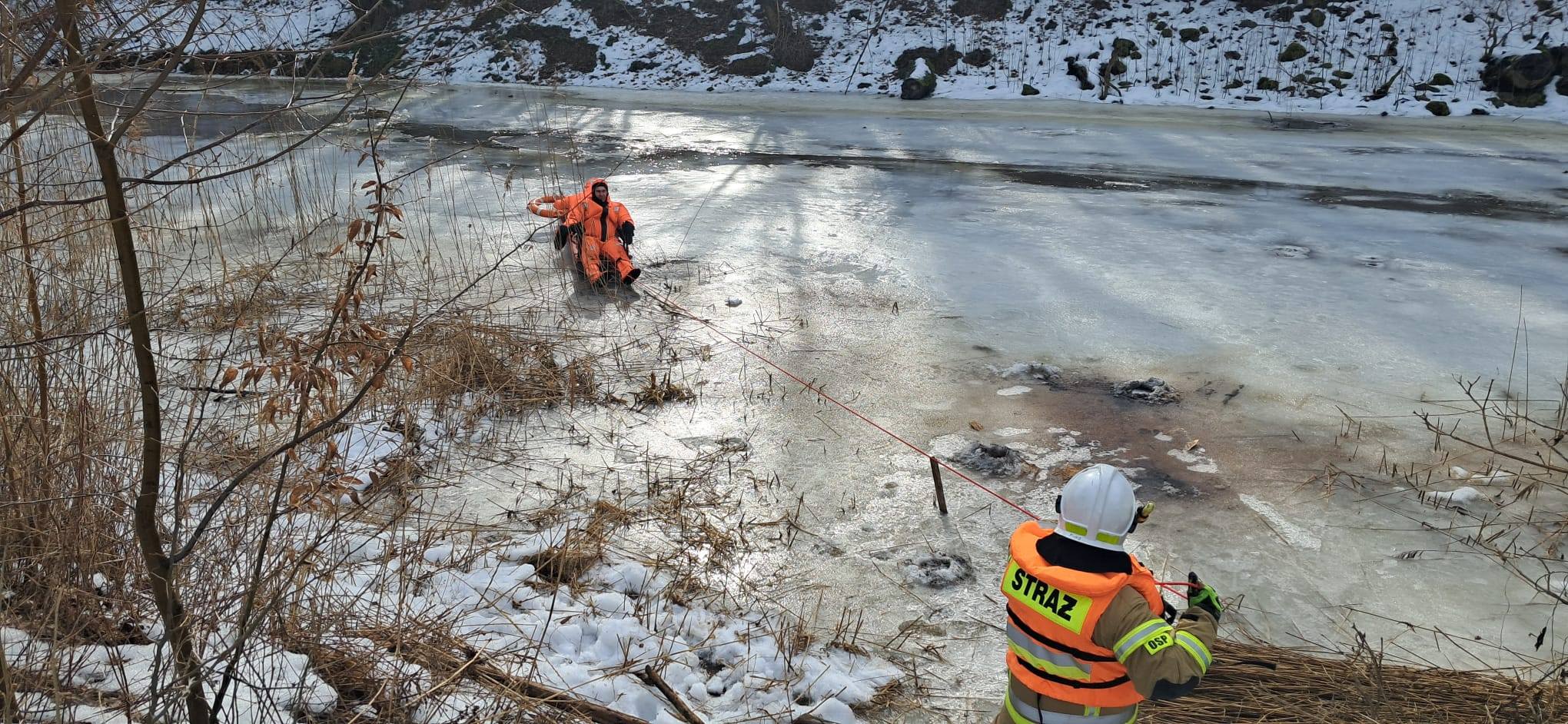 Po dotarciu na miejsce strażacy przeprowadzili akcję ratunkową. Poszkodowany został ewakuowany z wody na specjalnych saniach lodowych, a następnie bezpiecznie przetransportowany na brzeg. Mężczyzna był silnie wychłodzony i trafił pod opiekę ratowników.
