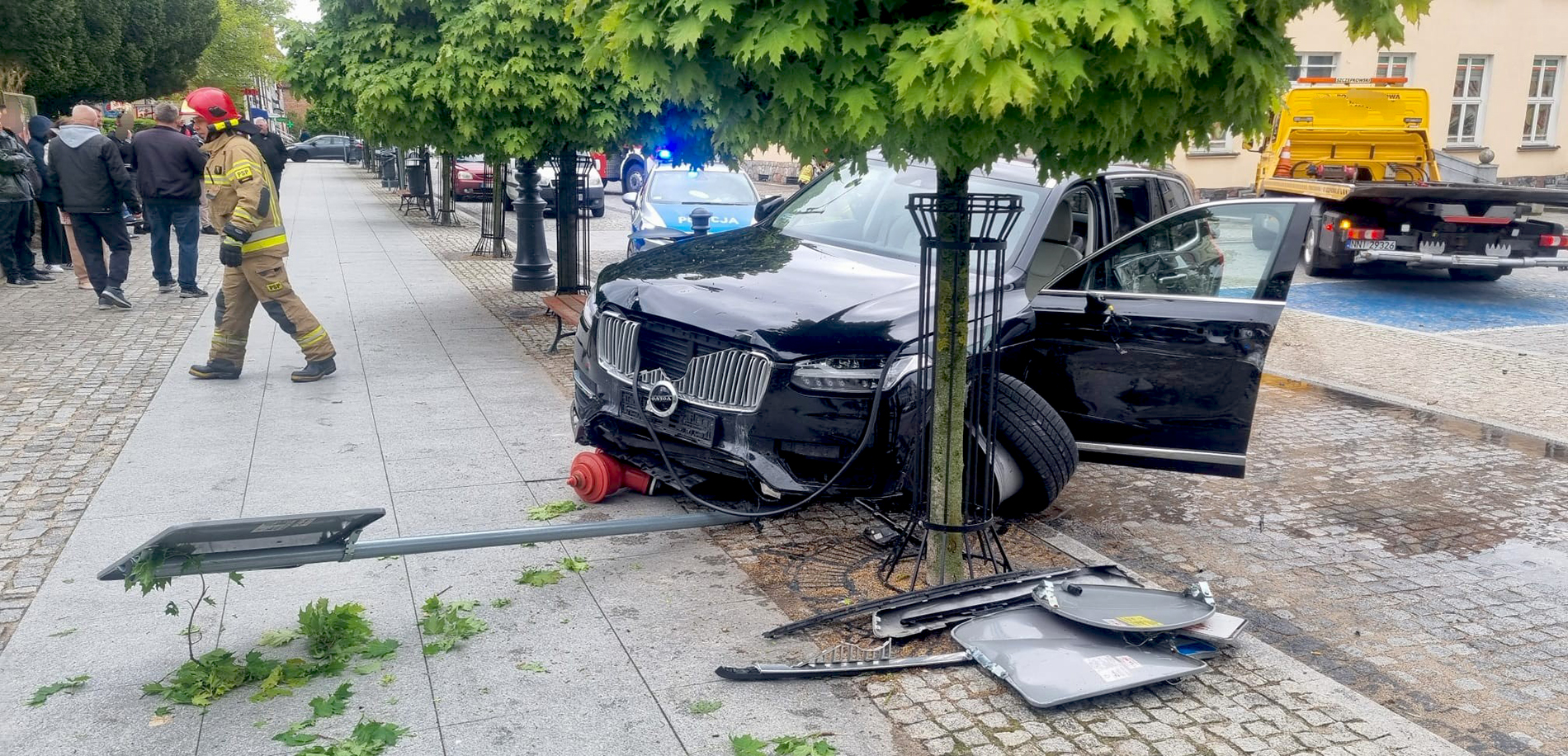 Pijany kierowca uderzył w ratusz w Nidzicy. Po drodze niszczył przeszkody