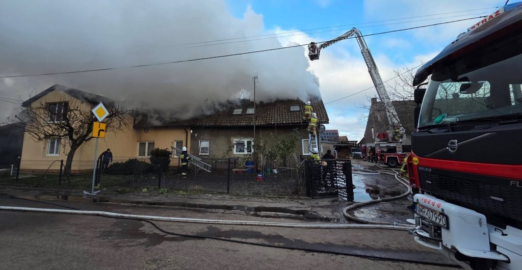 Strażacy walczyli z pożarem domu. Dwie rodziny straciły dach nad głową