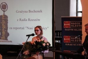 Nagrodę Samorządu Powiatu Olsztyńskiego przyznano reporterce Radia Białystok Agnieszce Czarkowskiej, za audycję pt. Rozstrzelany zegarek. Fot. Łukasz Sadlak