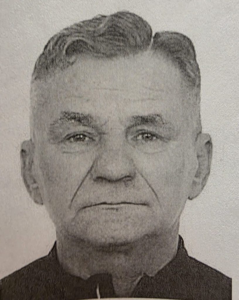 Mężczyzna ma 62 lata, 170 cm wzrostu, szczupłą budowę ciała i ciemne, siwiejące, proste włosy. Na ramieniu ma wytatuowany zegar i datę napisaną cyframi rzymskimi