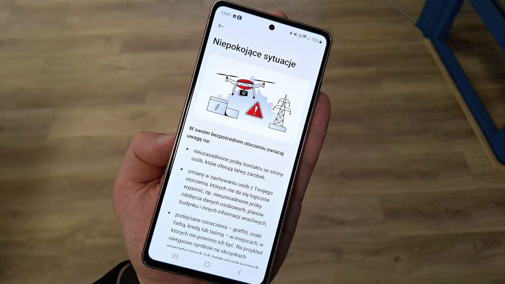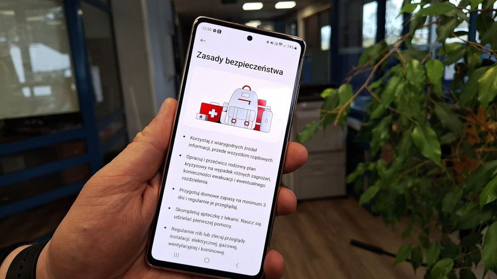 Użytkownicy aplikacji znajdą poradnik w kategorii „Bezpieczeństwo”. Został on podzielony na pięć tematycznych sekcji. Pierwsza z nich dotyczy ogólnych zasad bezpieczeństwa i podpowiada, jak zachować się w sytuacjach kryzysowych oraz jakich działań unikać, by nie narażać siebie i bliskich.