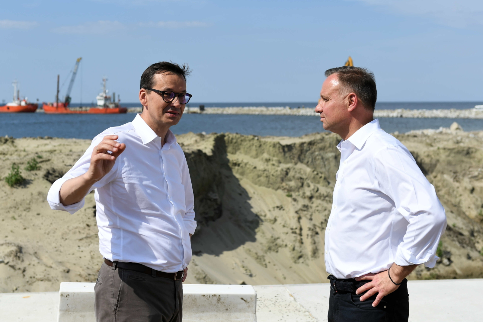 Prezydent Andrzej Duda i premier Mateusz Morawiecki odwiedzili teren przekopu Mierzei Wiślanej, koło Kątów Rybackich, gdzie trwa budowa kanału żeglugowego. Kanał ma przyczynić się do rozwoju portu w Elblągu i portów nadzalewowych.